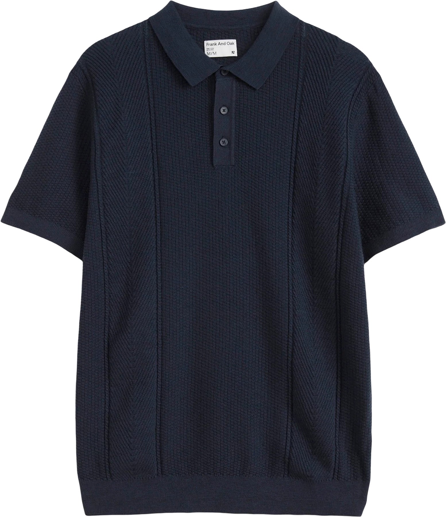 A retro-inspired summer staple. This polo is made from lightweight, breathable organic cotton. Its knit forms a wide, tone-on-tone herringbone pattern. Regular fit. 3-button closure. Ribbed placket, cuffs and bottom band.