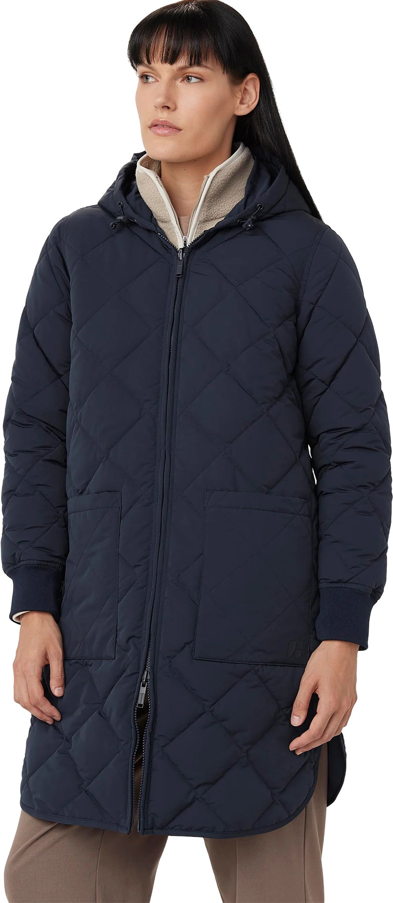 A long, hooded version of our iconic design. Made from a durable, matte-finish fabric featuring our signature diamond-shaped quilting. Wind-and water-resistant, it is designed to withstand temperatures ranging from 5ºC to -10ºC when worn solo. C0(PFC-free)DWR 80/20 coating with cire finish. Regular fit. Knee length. Thermore® Ecodown® insulation made from recycled plastic bottles. Adjustable hood. Zip closure. Ribbed cuffs. Can easily be paired with our Smart Layer topcoats for added warmth. Reversible design. Side A features quilting and patch pockets at the waist. Side B features a smooth shell and chest pockets.