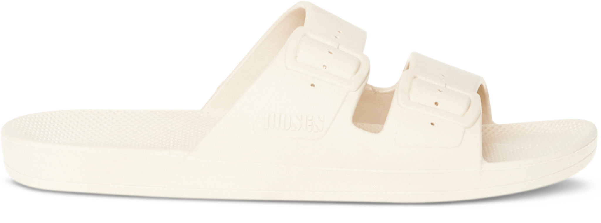 At Freedom Moses we're all about celebrating summer 365 days a year. From am to pm, our vegan slides are injected with air so you feel like you’re walking on a cloud. Whether chilling at the beach or just hanging out, we’re also available for your whole crew, from kids slides to women's slides and men’s slides, if you’re into prints, glitters, metallics or basic colors we’ve got you covered.