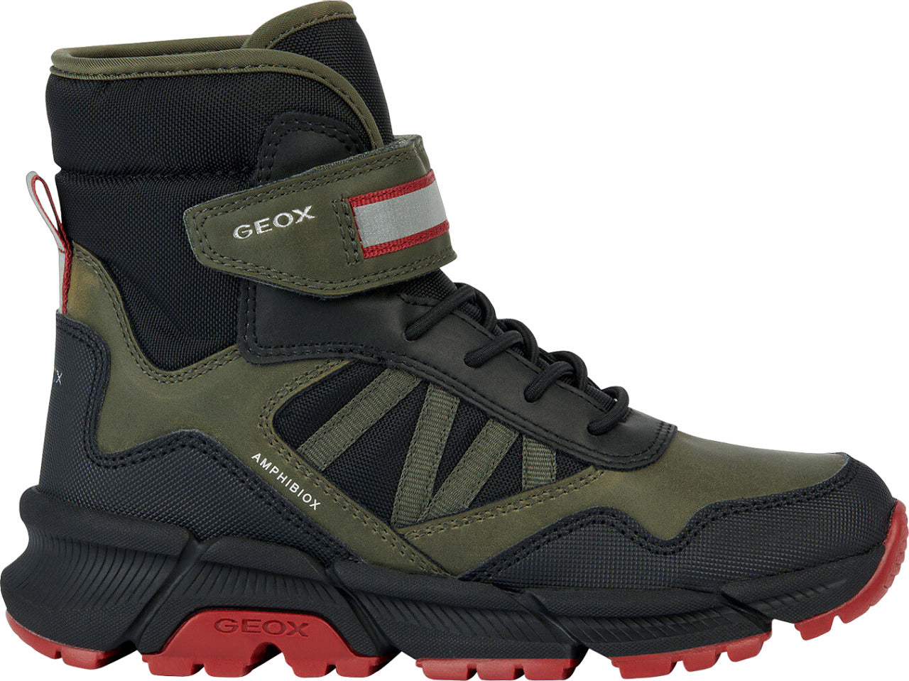 Boy's cozy, waterproof and cushioning ankle boot with an outdoor vibe. This Military version of Flexyper Plus rests on a rubber sole with an outstanding grip that guarantees a stable comfortable gait, even on wet ground. Crafted from a waxed-leather-effect material and nylon, it ensures the utmost protection against the cold and rain and boasts laces and a hook-and-loop strap with reflective detailing.