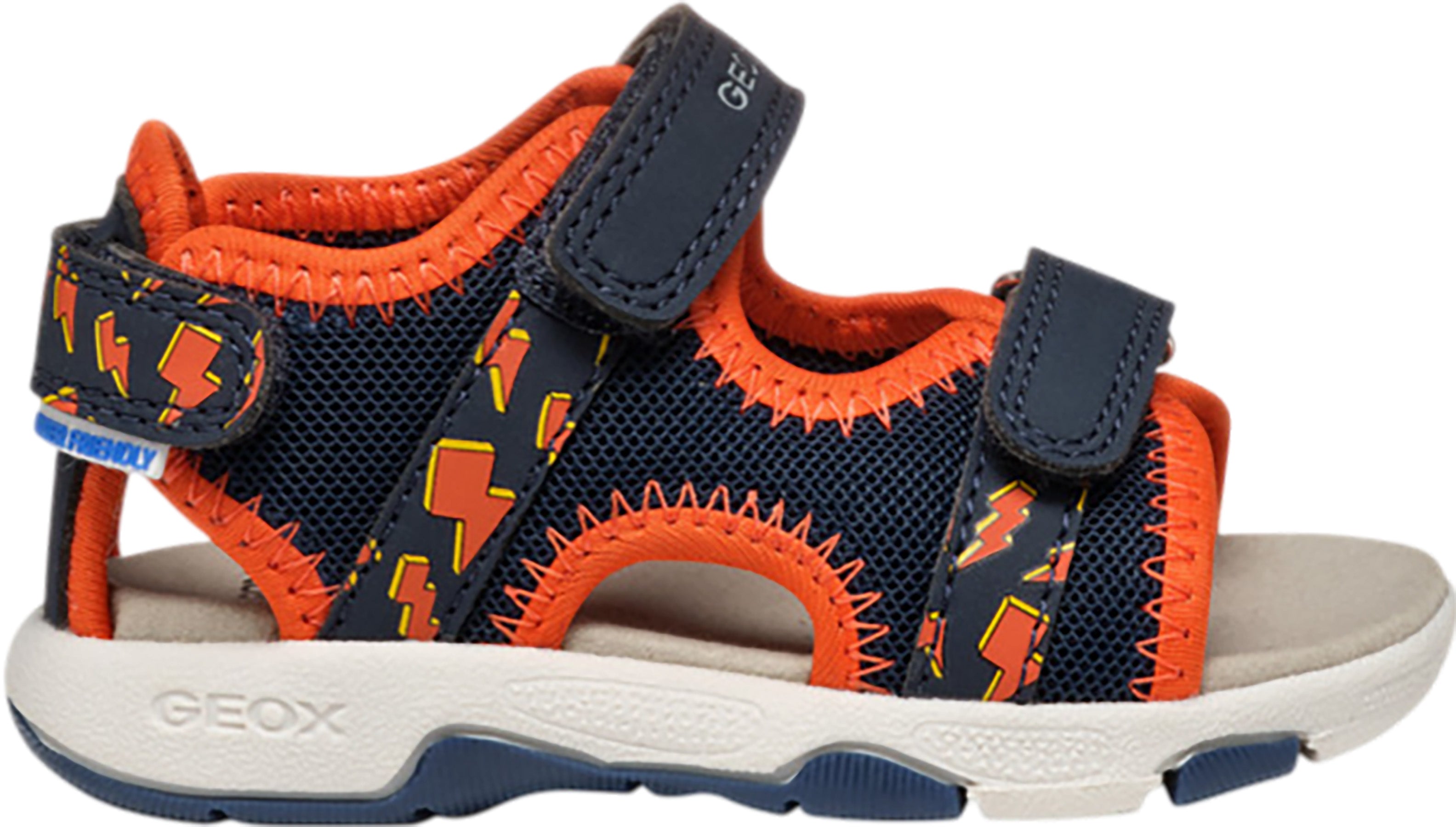 • Breathability for the outsole and a feeling of well-being for the foot are guaranteed by Geox-patented systems • Waterproof: water-friendly footwear made from quick-drying, antibacterial and durable materials • Excellent flexibility guaranteed by the Flexy System integrated into the tread • Lightweight footwear for comfortable walking throughout the day • Fully adaptable footwear thanks to an easy entry and adjustable fit • Antibacterial footbed • The triple velcro strap closure means it is totally adjustable