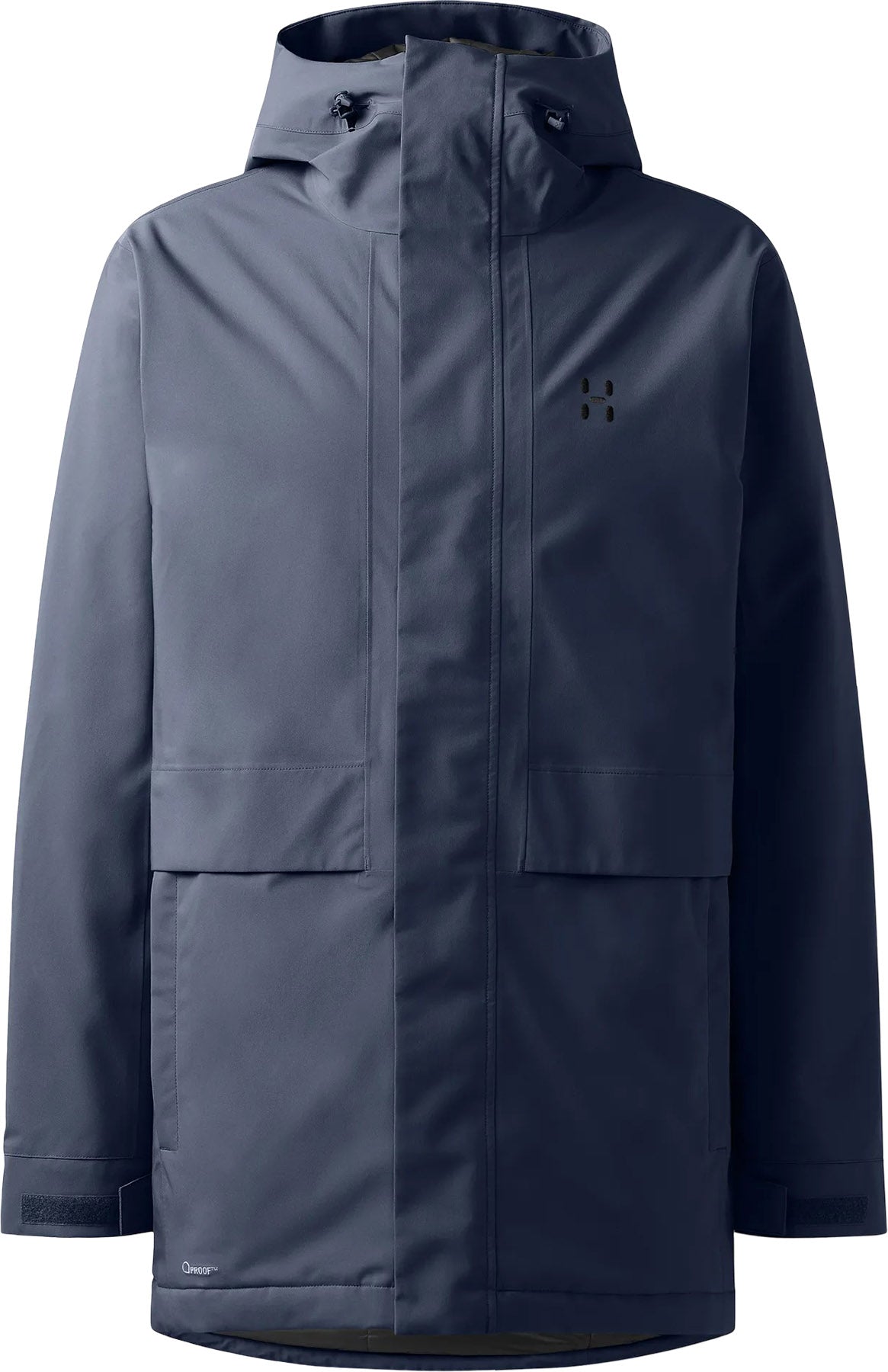 The Salix Proof Mimic Parka is a warm and weatherproof parka for hiking and everyday activities. It’s made from lightweight and breathable PROOF™ shell fabric in recycled polyester and filled with MIMIC Silver recycled polyester insulation with an excellent warmth-to-weight ratio. PFAS-free DWR-treated surfaces to help repel water and dirt. It has a full-coverage fit, with a longer length and a large adjustable hood.
