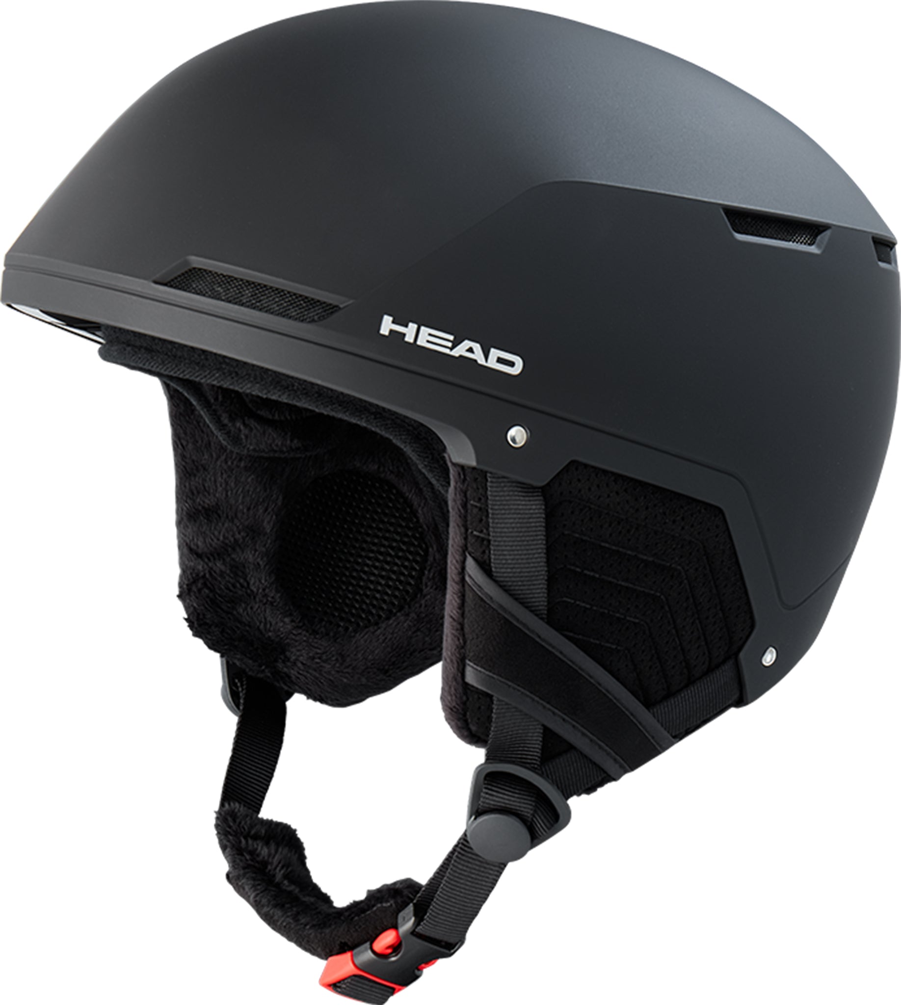 Lightweight and durable ski and snowboard helmet in black with slim profile and adjustable ear pads. The patented Sphere Fit system assures a perfect fit.