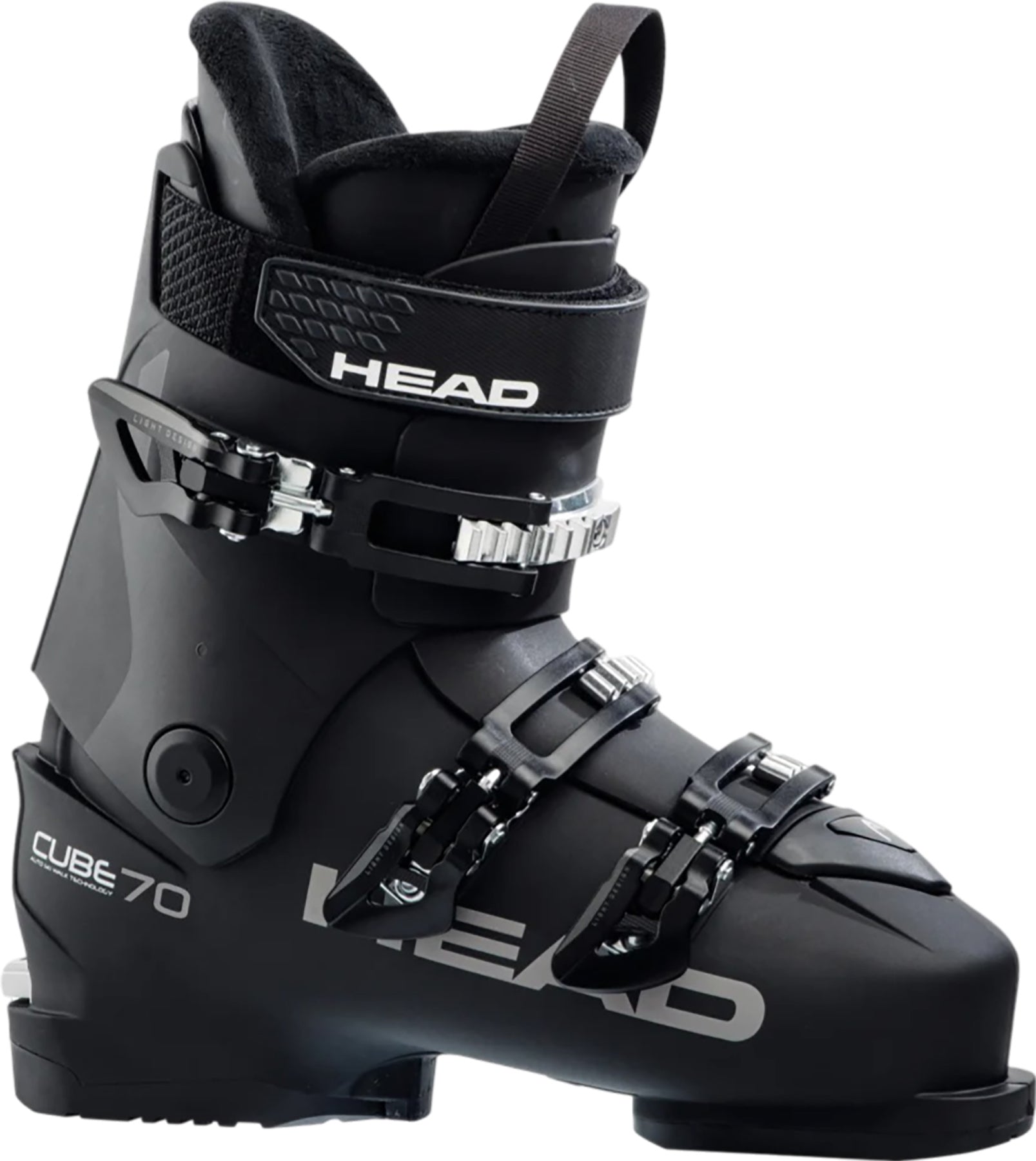 For all resort comfort and assured Head performance intermediate skiers should try the easy-entry, progression-friendly Cube 3 70 with its wide last. The boot features an easy entry shell, with form fitting, micro-adjustable buckles and a power and rebound enhancing strap; plus a binding activated auto ski walk mechanism. Combined with a custom fit heat mouldable liner that hugs and holds the foot for quick power transfer and ski response the boot deliver all-mountain access for all-day progressive skiing.