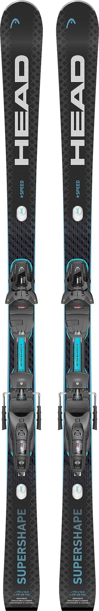 Born from the race world, the Supershape e-Speed offers pure World Cup carving performance to intermediate through expert skiers thanks to a user-friendly new construction and shape. A slim 68mm waist and a tip shape designed for easy turn initiation, the e-Speed is lighting quick edge-to-edge in both long and short turns. A World Cup Sandwich layup and layer of Titanal work in concert with light but strong Graphene and Crossforce Carbon, which reduces material in the center of the ski for a truly harmonized flex distribution without sacrificing performance. Head’s EMC technology reduces vibration for a smooth ride at all speeds. The ski’s unique Better Balance system plate provides a constant ramp angle for all boot sizes, offering optimum balance for skiers.