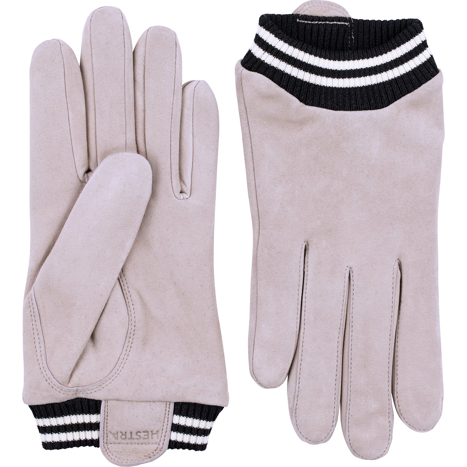 Short style made of hairsheep suede with sporty ribbed cuff.