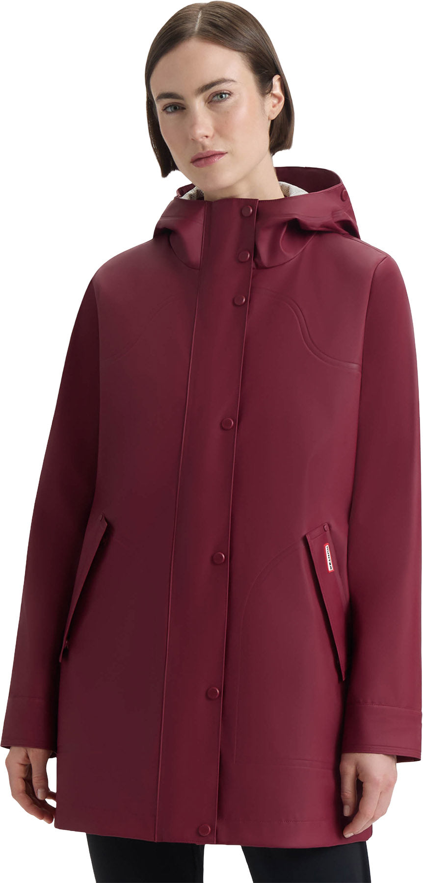 Stay dry in style with the Acacia rubberized rain jacket, featuring waterproof welding seam construction for ultimate protection. Complete with a permanent hood, angled flap pockets and a convenient 2-way zipper and snap placket opening, it offers both functionality and fashion.