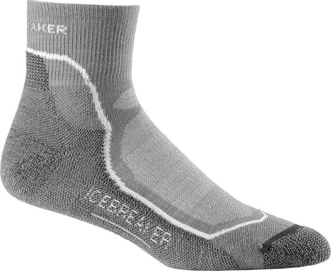 The Men’s ICEBREAKER HIKE+ Light Mini Socks give you precision and comfort when you need it most. On the trails or in the streets, each pair is made specifically with a right and left foot for a snug fit. Merino wool is a lightweight fabric that regulates body temperature by absorbing sweat and bringing moisture away from the body to keep it dry. The weave includes nylon for strength and structure and combines with LYCRA for improved stretch. Lightweight and breathable with odour resistance to keep your feet smelling fresh. Seamless toe closure helps prevent blisters. The heel is designed to maximize fit while maintaining comfort.