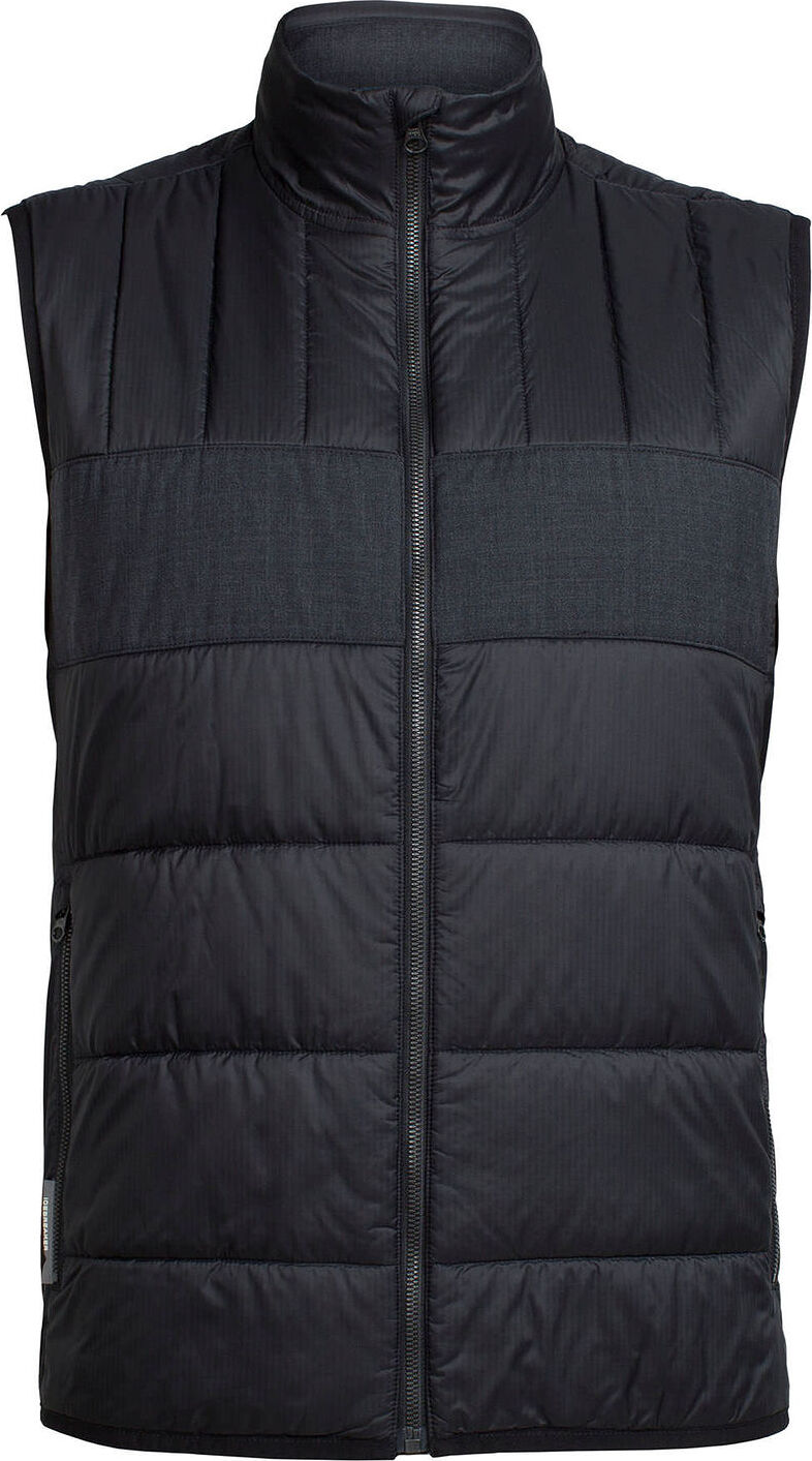 The men's Stratus X vest is a mountain town classic. It generates its warmth from Icebreaker's innovative MerinoLOFT™ insulation, which is made from all-natural merino wool and is a sustainable, high-loft alternative to synthetic insulations. MerinoLOFT™ retains warmth when wet and naturally regulates your body temperature. The vest' core is also lined with 100% woven merino wool, for a soft and moisture wicking next-to-skin feel. Icebreaker rounded off this environmentally conscious vest with 100% recycled polyester shell, which is durable, eco-friendly, and features a DWR finish to shed-away light rain.