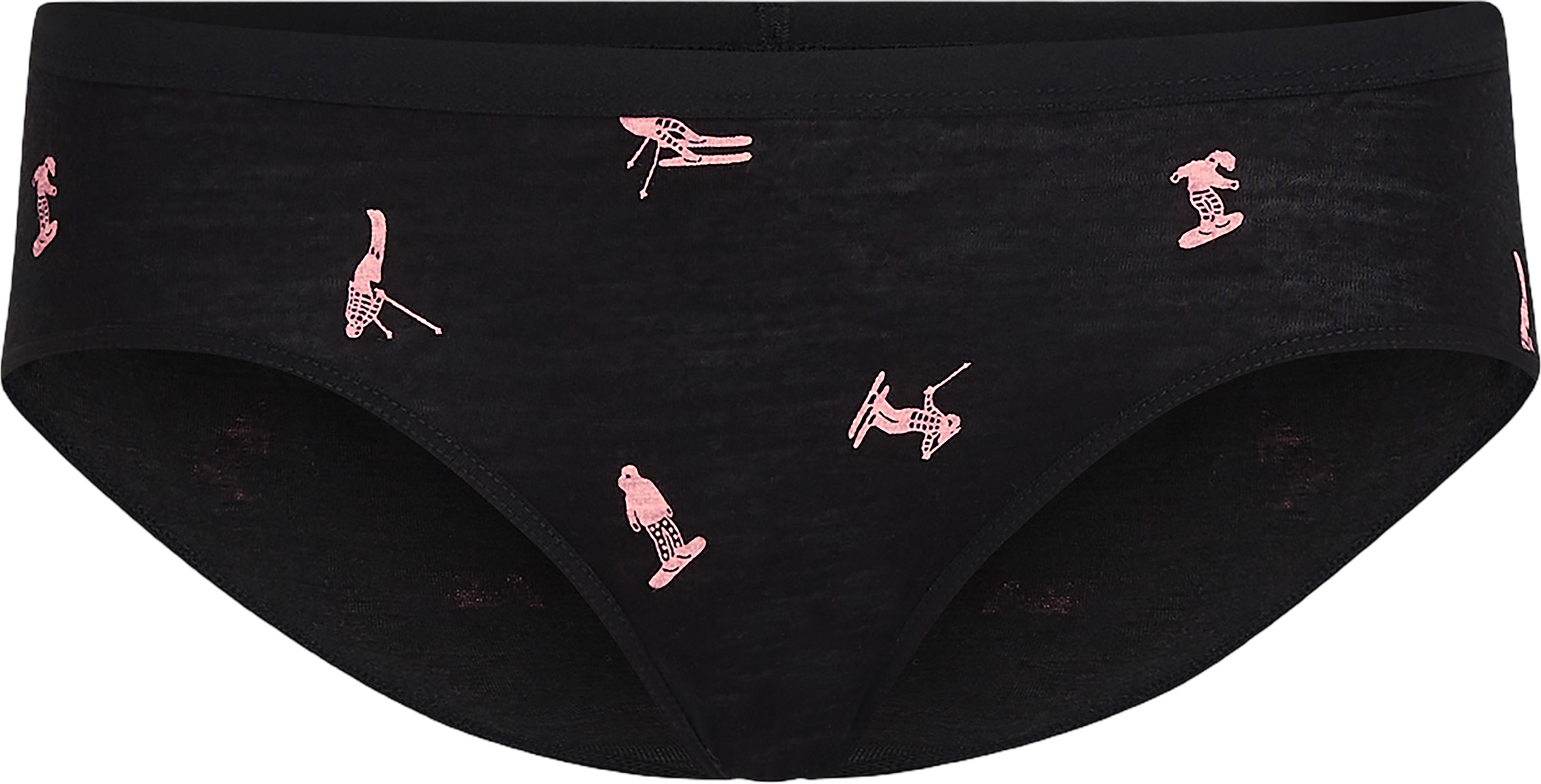 An ultra-comfy underwear bottom for everyday wear, the Merino 150 Siren Hipkini Snow Day features our ultra-lightweight corespun merino jersey with a touch of elastane for stretch. A fun all over print of various snowboarders and skiers, making there way down the piste.