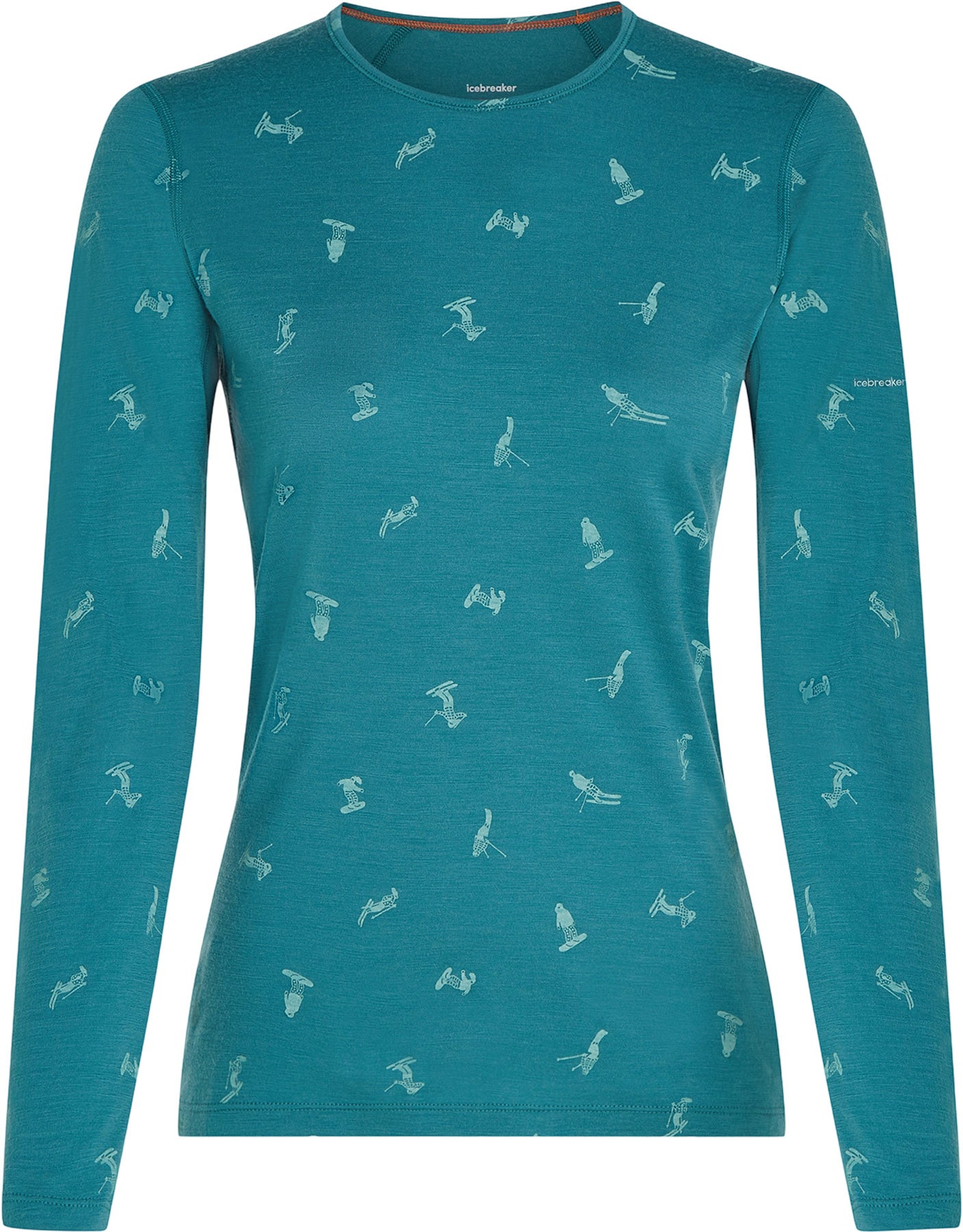 The benchmark against which all others are judged, the Merino 200 Oasis Long Sleeve Crewe Snow Day features our most versatile merino wool jersey fabric for year-round layering performance across any activity. A fun all over print of various snowboarders and skiers, making there way down the piste.