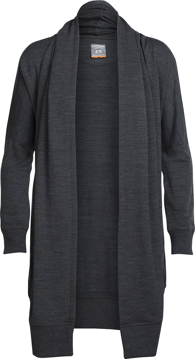 The Zoya Long Sleeve Coverup is the ultimate wrap-up sweater for relaxing warmth on a chilly autumn afternoon or for evenings around the house. It’s made from Icebreaker’s ultra-cozy, unbrushed terry fabric that features corespun fibres. Corespun fabric are nylon threads wrapped in merino wool for added strength that still maintains an amazingly soft, next-to-skin feel. It’s also constructed with a touch of LYCRA® for improved mobility and stretch. A foldover neckline drapes nicely and has an elegant look, and the dolman-style sleeves feature dropped armholes that layer easily. The ribbed sleeve cuffs and lower hem give this Zoya Coverup a classic sweater feel.