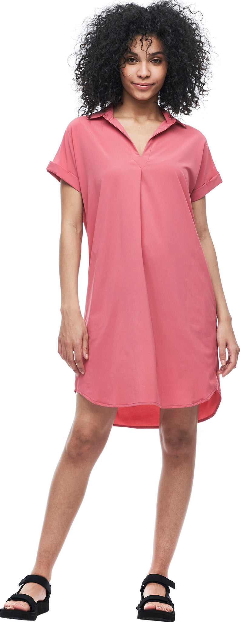 The Frivol dress is made of light woven fabric that offers comfort, lightness, softness and stretchability. The Frivol dress also have hand pocket with laser cut and bonded finishing to ensure that its both useful and fashionable. The fabric dries quickly, has moisture wicking properties and has a UPF rating 30+. These features make this dress versatile, great for travel and various outdoor activities.