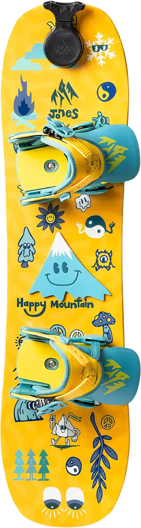 The Happy Mountain is a complete board and binding package made to get young rippers sliding and gliding with ease. The board features an innovative 3D base for stability and comes ready-to-ride right out of the box with pre-mounted bindings. The board also includes a retractable tow reel for towing your lil’ shredder uphill and controlling their speed downhill.