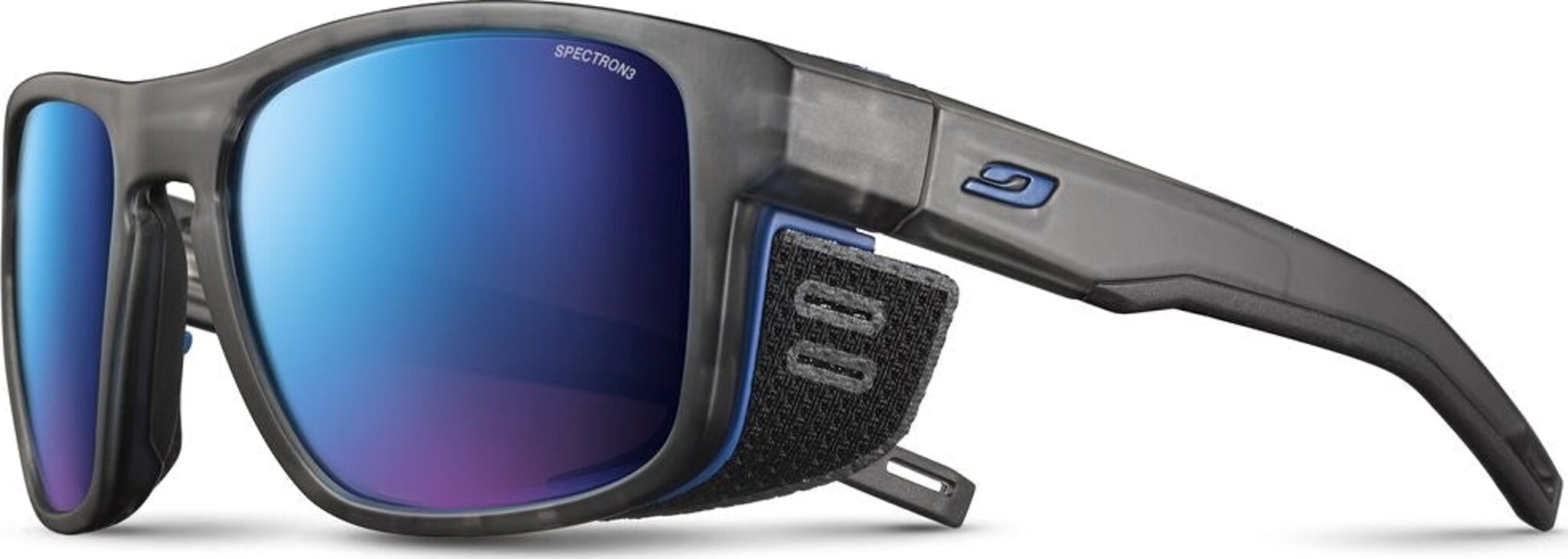 Julbo has combined its high-altitude technical expertise with a modern look to create high-protection, high-performance sunglasses. Removable fabric side shields provide flawless protection and comfort. Fitted with the Air Flow venting system, Shield will be your ally of choice when you start to work harder on the ascent. They'll stay firmly in place thanks to curved Grip Tech temples and a non-slip bridge. The sophisticated design will add an extra note of boldness to your next high-altitude challenge.