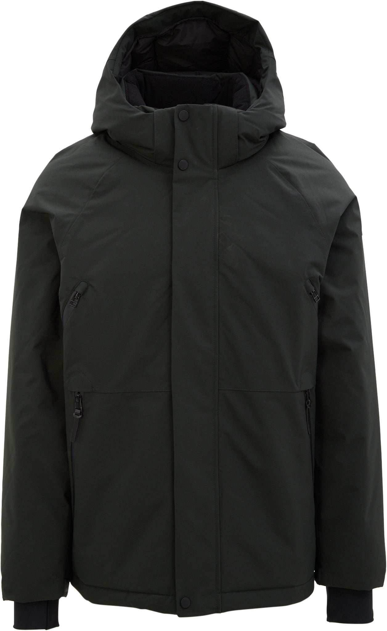Alpin is an insulated short puffer with a removable hood, zippered underarm vents, storm cuffs and an adjustable hem.