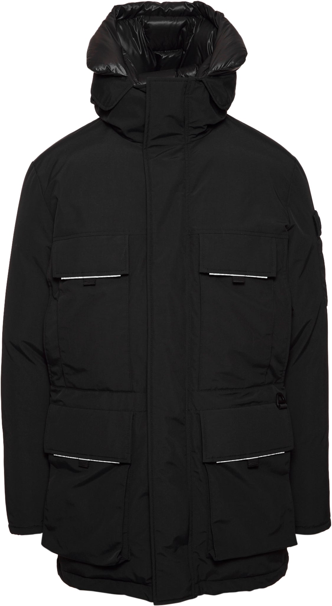Features • Straight fit • Two-way center front zipper under hidden snapped flap • Four front bellow patch pockets with hand warmer insert • Interior pocket with zipper • Adjustable elastic on waist and hem from the inside • Alutica black finish D-ring • Adjustable hood with puffy visor detail • Insulated wrist finishing with sueded knit fabric and coldbreaker elastic • Reflective details at back and pockets • Hydrophilic lamination 10K/10K, DWR, wind-resistant, light