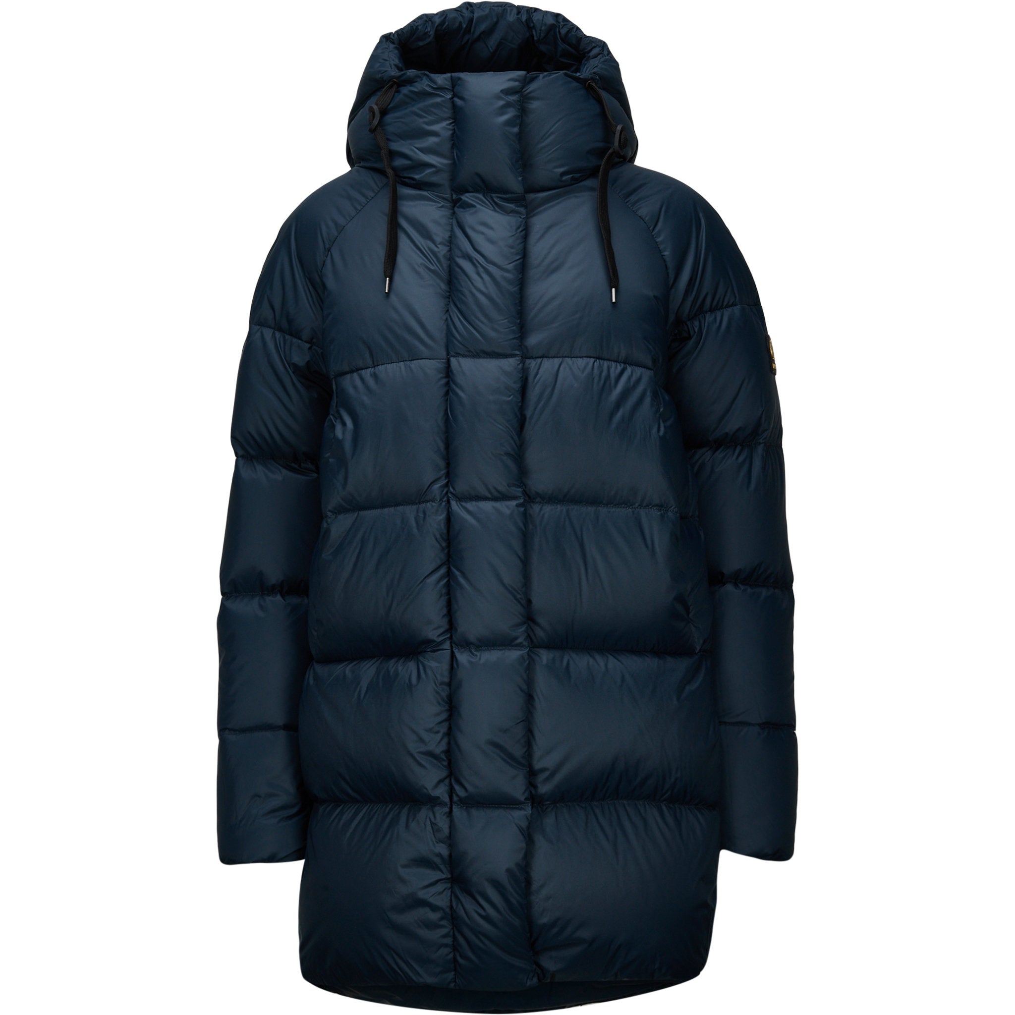 • 800-fill white Hutterite duck down • Premium nylon shell • Durable Water Repellent finish • Attached adjustable hood w/ braided cord • YKK two-way front center zip • 2 hand pockets with YKK zips • Interior patch pocket • Side openings w/ zips • Adjustable bottom hem • Tricot suede finish on inner sleeves • Insulated elastic wrist cuffs • Shoulder straps to carry coat • Loose fit, above-the-knee length • Ethical, traceable down
