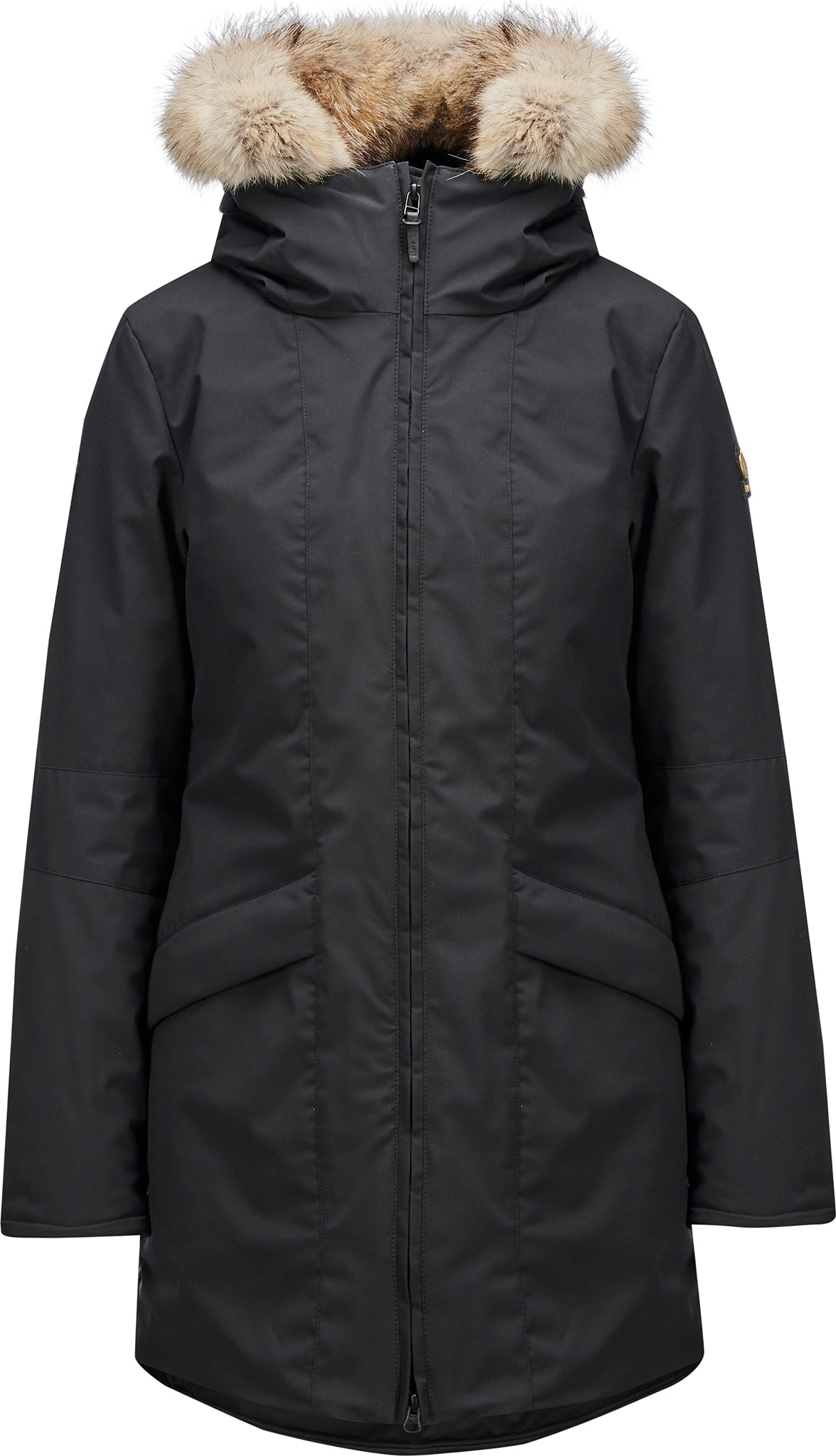 This versatile thigh-length coat makes a sleek understatement with its flattering profile and tailored seaming. It’s crafted from our wind-resistant, fabric and flexible, compact Thermo+ Comfort insulation to keep you warm and dry in the city without bulk. The attached hood with removable fur adds warmth and style.