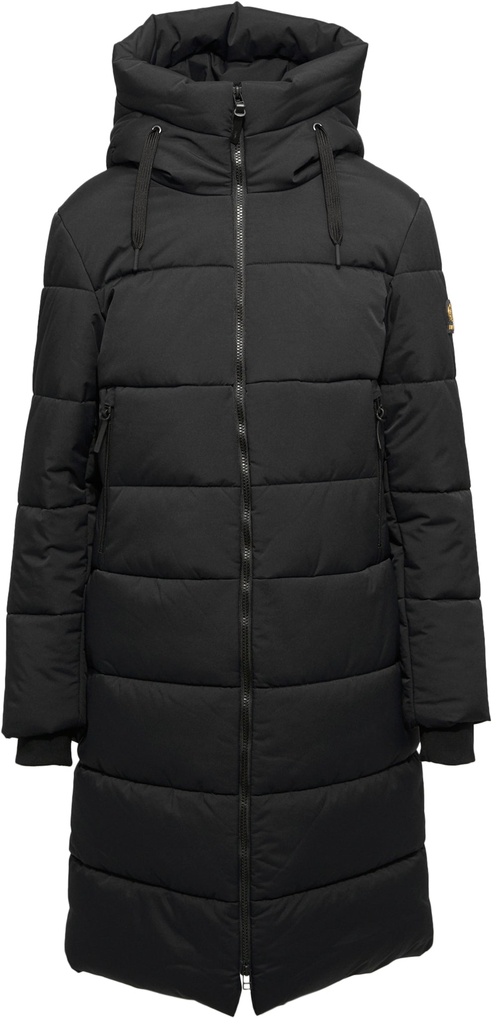 Madison is an insulated puffer with an adjustable fixed hood and rib knit storm cuffs.