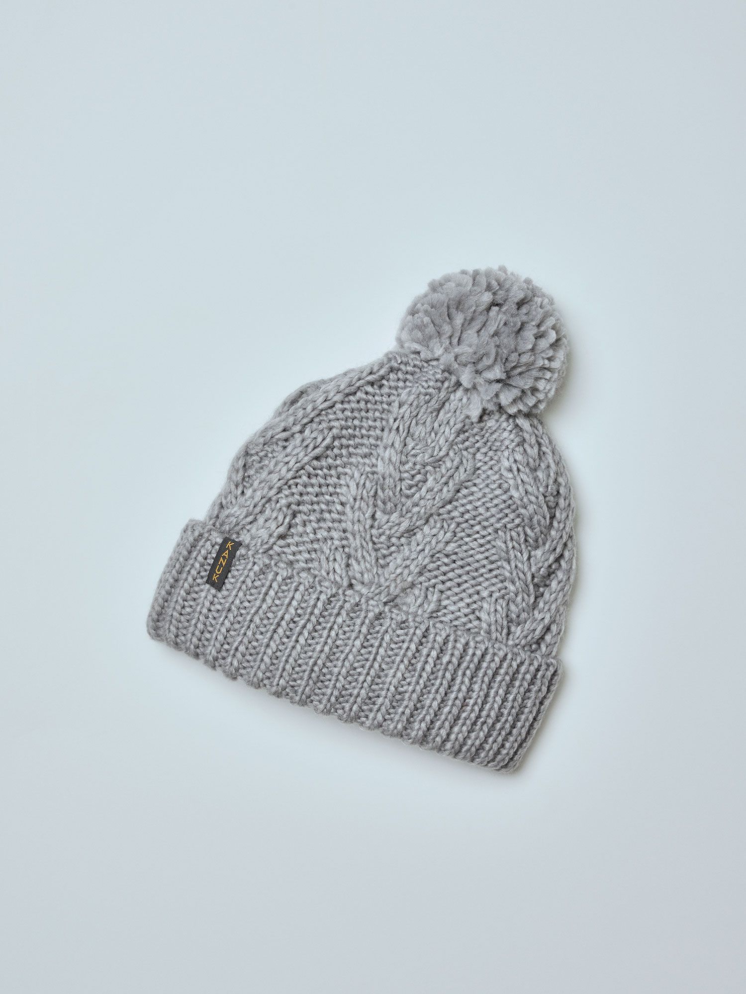• Cable-knit beanie with polar fleece lining and detachable pompom