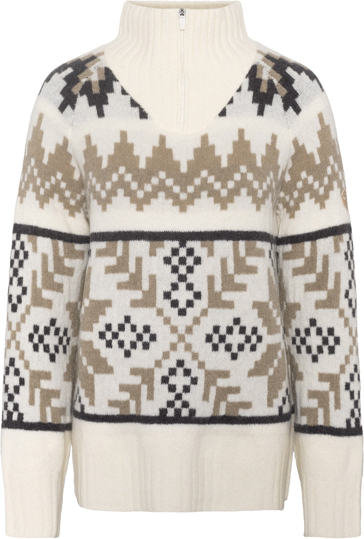 The show-stopping Kari Traa Amelia Knit is a wool/synthetic blend with a northern Norway-inspired pattern. Voluminous sleeves and the slightly oversized fit make the Amelia a cozy go-to. The fabric blend is unbelievably soft and warm without added heft or bulk. With a high collar, half zip neck opening and ribbed hems and cuffs, the Amelia is sure to become a wardrobe staple.