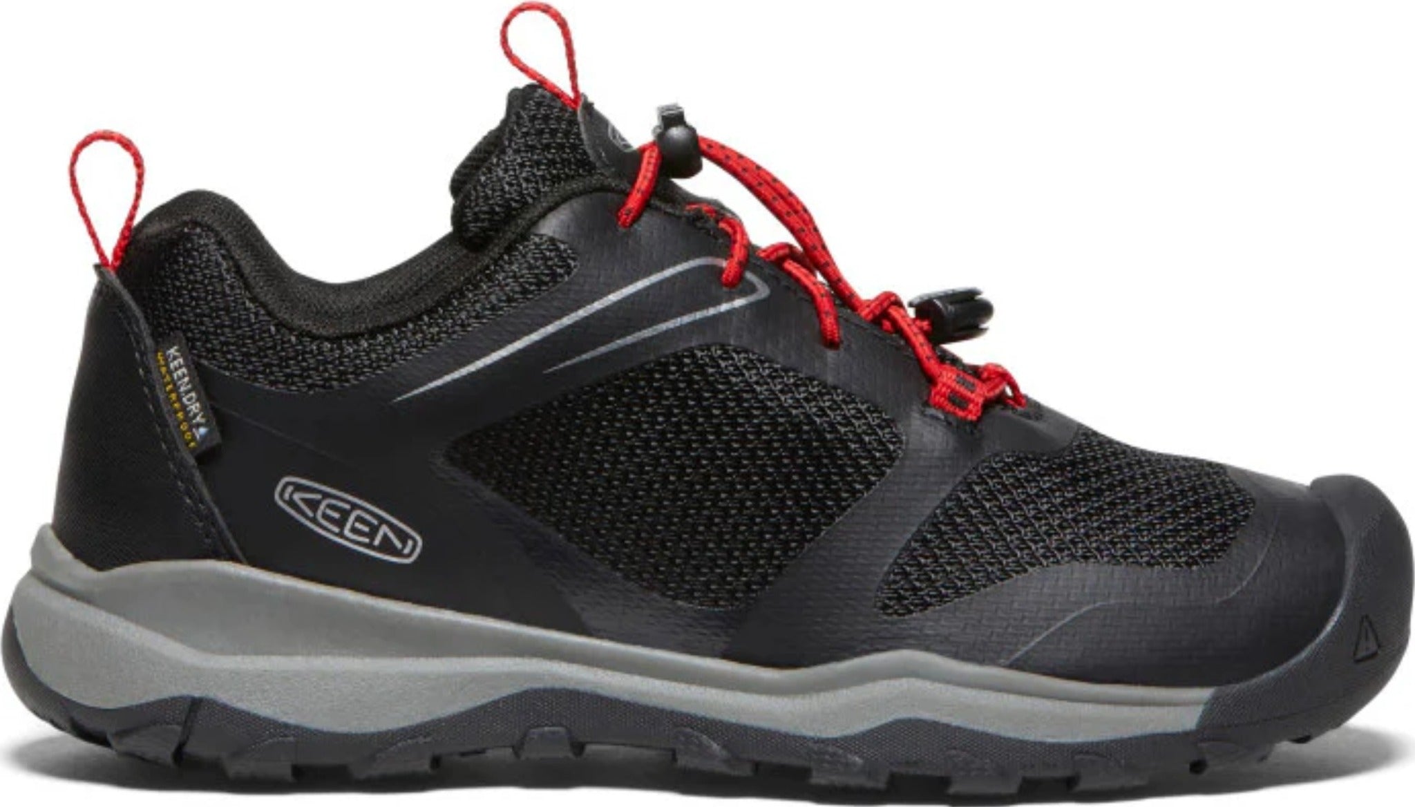 Light and fast with iconic trail comfort and protection. Our most athletic, versatile hiking shoe for always-outside kids.• Keen.Dry waterproof, breathable membrane• Keen.Fusion rubber for lightweight durability• Multi-directional lug pattern provides superior traction• PFAS-free, durable water repellent• Eco Anti-Odour for natural odor control• Waterproof synthetic and textile upper• Static Lace-lock bungee system with adjustable hook-and-loop closure• Breathable mesh lining• PU insole with arch support for long-lasting comfort• Non-marking Keen.Fusion rubber outsoleCare• Gently brush with a soft, damp sponge to remove loose dirt• Treat stains right away with a gentle cleaner• Air dry away from heat