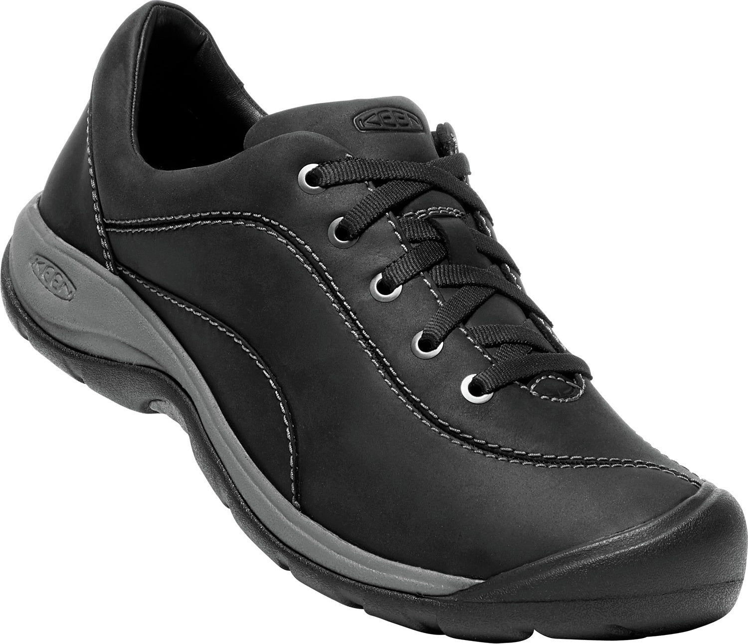 Walk, stroll, and spend all day on your feet with the women’s PRESIDIO II Shoes by Keen. These low-profile, full-grain leather shoes feature durable water-repellent finishes and comfy suede liners. Underfoot, compression molded EVA midsoles and removable arch support footbeds deliver plenty of stable comfort for long days on your feet. Outsoles in strong yet supple non-marking rubber provide excellent traction.