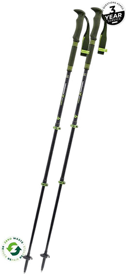The Carbon Pro Zero Poles are length-adjustable carbon poles with an extended grip zone-perfect for steep terrain. An all season round pole with its lower part made of robust titanal and changeable baskets.