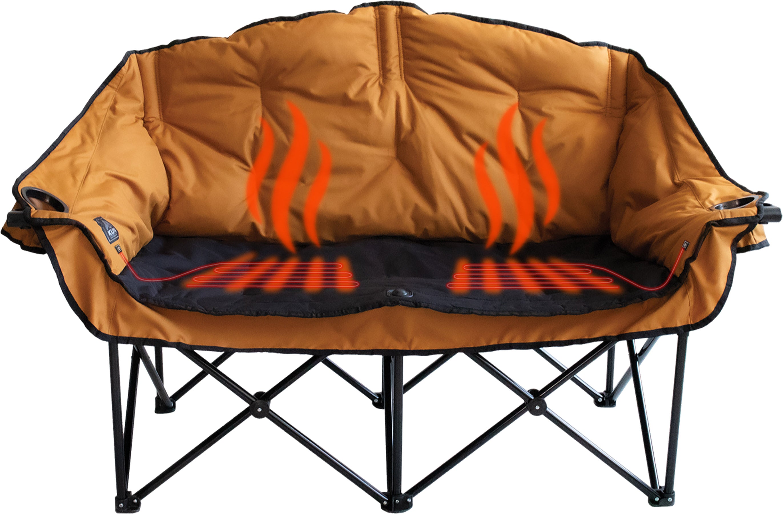 Features • Durable 600D Polyester • Sturdy 3/4” black tube frame • Stabilizer feet • Padded back & arm rests • 2 Stem glass holders • 2 Beverage holders • Dual independent heated seats • Carry bag included