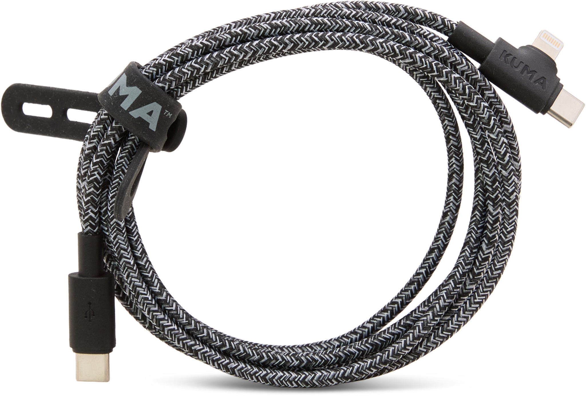 The Kuma 2-in-1 USB-C Charging single-cable solution designed for charging multiple devices at optimal speeds. This 6ft cable features a primary USB-C connector capable of 60W fast charging, along with an integrated 27W Lightning adapter, allowing you to power both Apple and other modern electronics without swapping cables. The high-density braided construction resists tangling and ensures long-term durability, while an included silicone strap keeps it organized in your pack or on your desk.