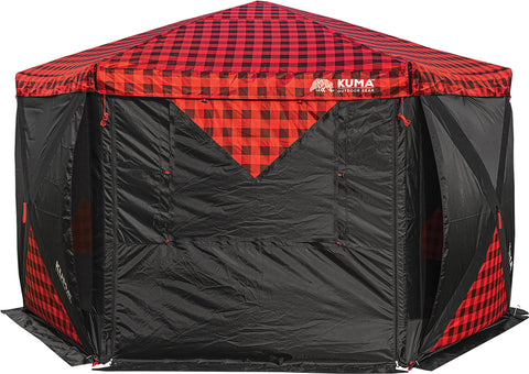 This Super deluxe version of the Bear Den Gazebo comes equipped with built in walls and is now 6" taller and has 2 doors! It still only takes 45 seconds to build, and take down is quick and easy in just 15 seconds (not including the new steel door frame pole). It comes complete with 2 doors, each with dual vertical side zippers for a large roll up door opening with front mesh window and base grommets on the door so you can lift and mount the door horizontal for a sun protective awning (poles sold separately, see Awning Poles). You can also now connect multiple Super Deluxe Bear Den Gazebos together with the Bear Den Gazebo Gusset via this zippered panel.