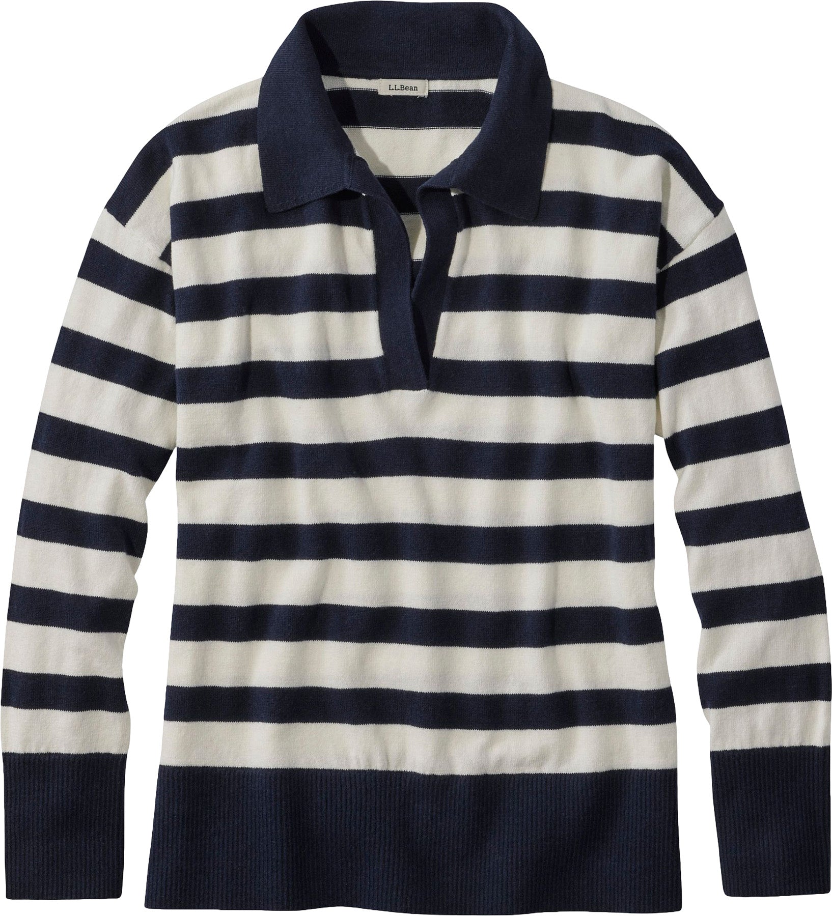 Features • Slightly fitted: Softly shapes the body • Falls at hip • Jersey-knit construction feels unbeatably soft • Ribbed polo collar with flattering split neck • Ribbed cuffs and hem