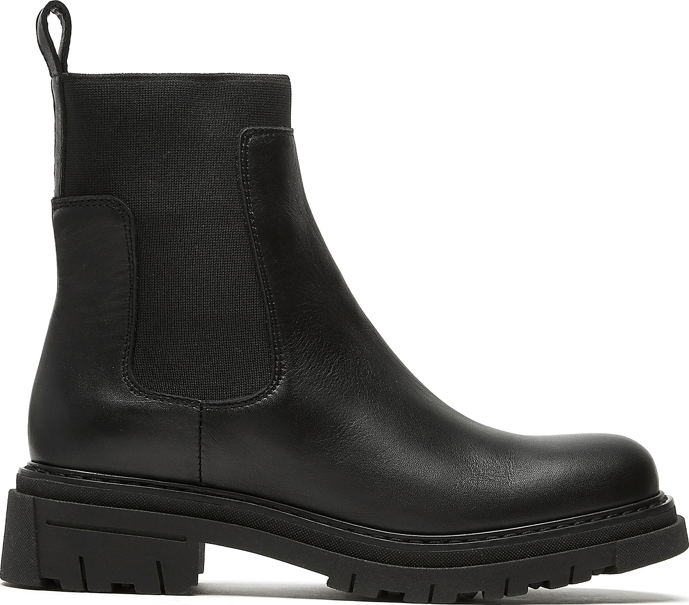 Chelsea City Dry™ leather bootie featuring a sturdy light weight lug sole, a round roomy toe bed. Elastic inserts on both sides, and extended elastic at the top line. Decorative pull tab at the top line. Stitch detail along the welt.