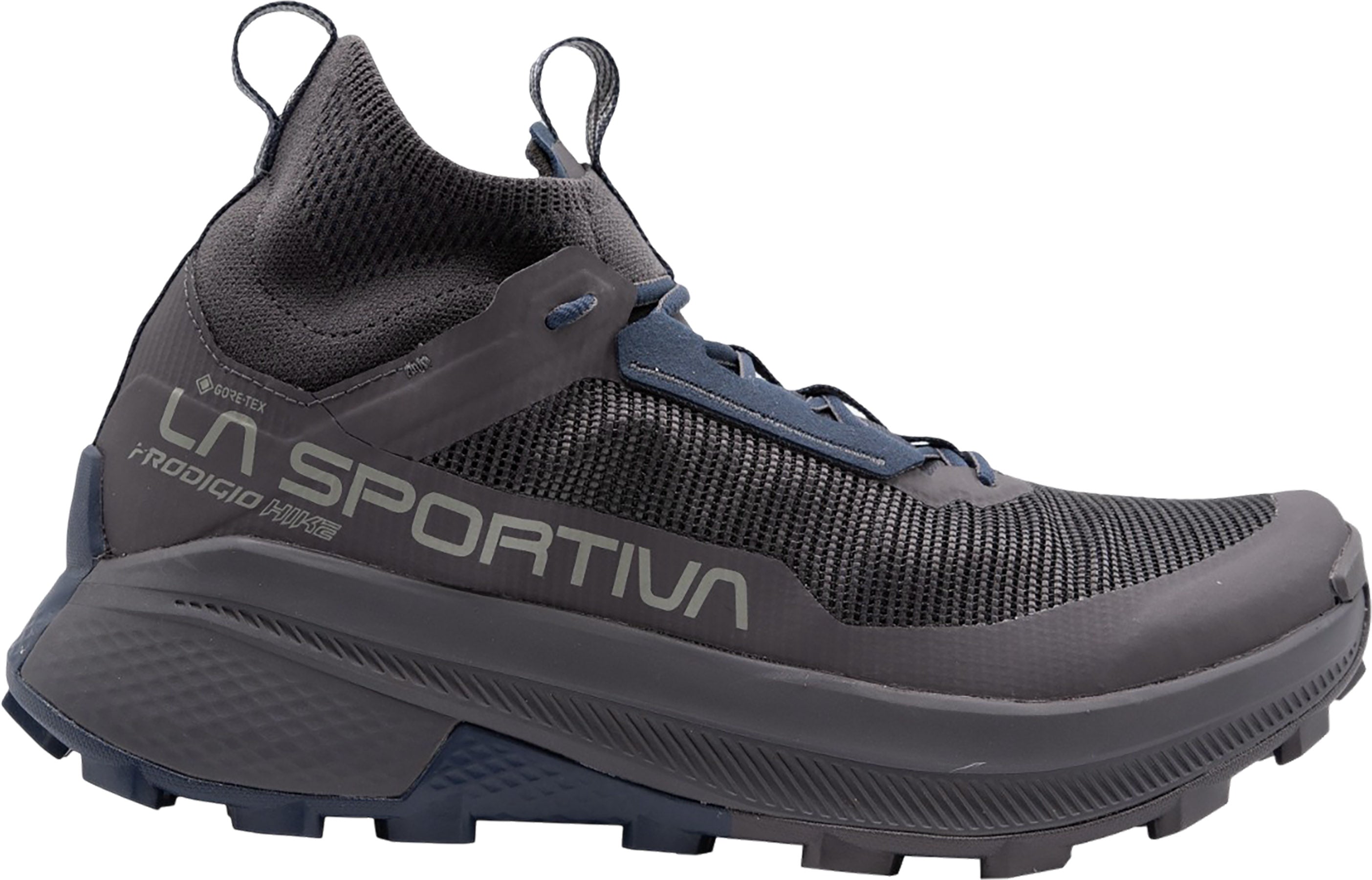 The revolutionary Prodigio Hike GTX is for fast hikers wanting to move efficiently across mountain terrain. Made with our High Tenacity Mesh upper, expect superb cushioning and breathability as you move quickly across traverses and demanding uphills. If it rains, the Gore-Tex ePE Extended Comfort membrane keeps your feet dry in all conditions so you can concentrate on the trail. The heel’s ergonomic shape and Rubber Tail Protection offer exceptional foothold and support, while the innovative Knit Collar wraps around for added ankle stability as you pick up the pace. For mud and rocky trails, the tried-and-tested Frixion Red outsole provides grip you can count on. We’ve also added Rubber Toe Protection to protect you from rocks and roots, so nothing slows you down. Reach mountain peaks faster and enjoy scenic descents in comfort with our Prodigio Hike GTX.