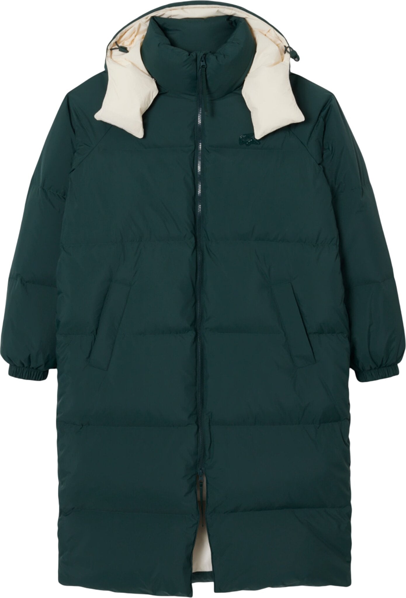 This long down jacket is a great example of Lacoste creativity and technical expertise. A bold, feminine piece, made from protective water-repellent fabric with down filling, with a loose cut, glossy signature details and contrast details including a hood. Brave the elements in style.
