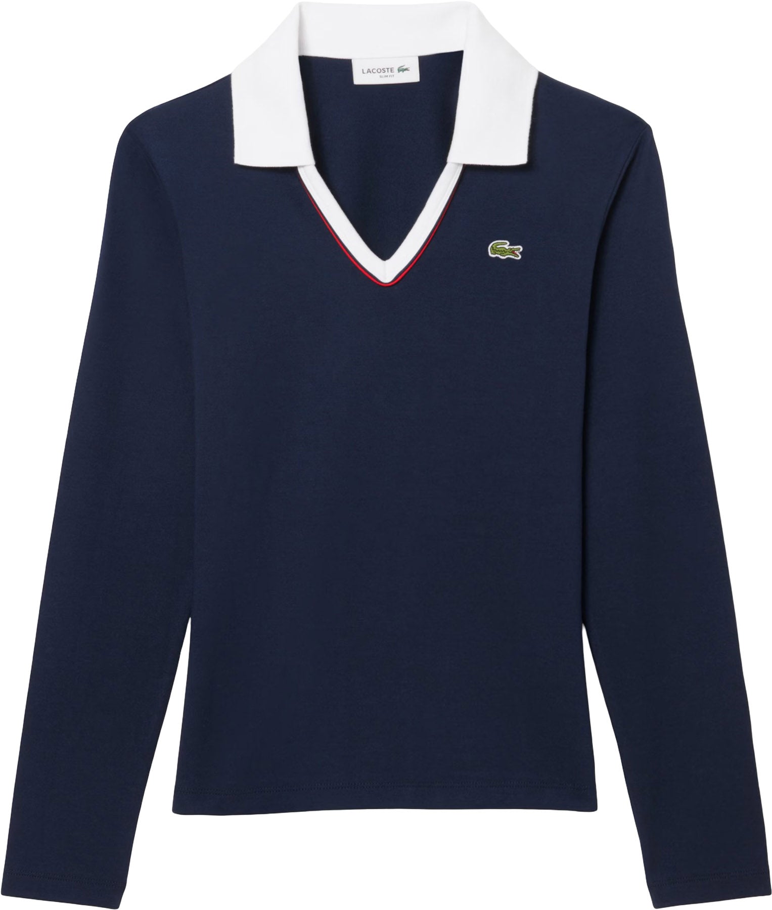 The essential polo of Lacoste wardrobe Long sleeves V neck polo in organic cotton Slim Fit: Adjusted ease chest, waist and hips Rib and double piping in contrasted colors on collar Collar in rib.