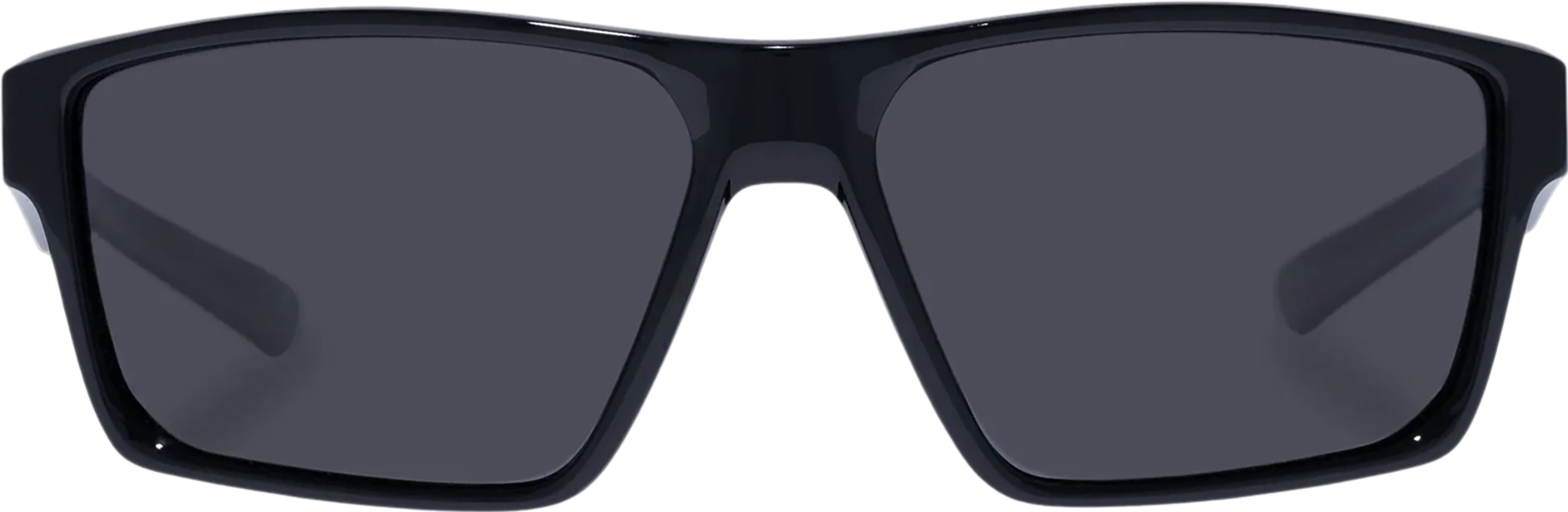 Designed with modern lines and a sleek profile, our DAUNTLESS sunglasses have a slightly wrapped aesthetic and a flat top bar. Offering a comfortable fit and effortlessly masculine look, this D-frame style, suitable for all face shapes, features classic Le Specs metal hardware on both temples. Finished in a classic black frame with tonal dark polarised lenses.