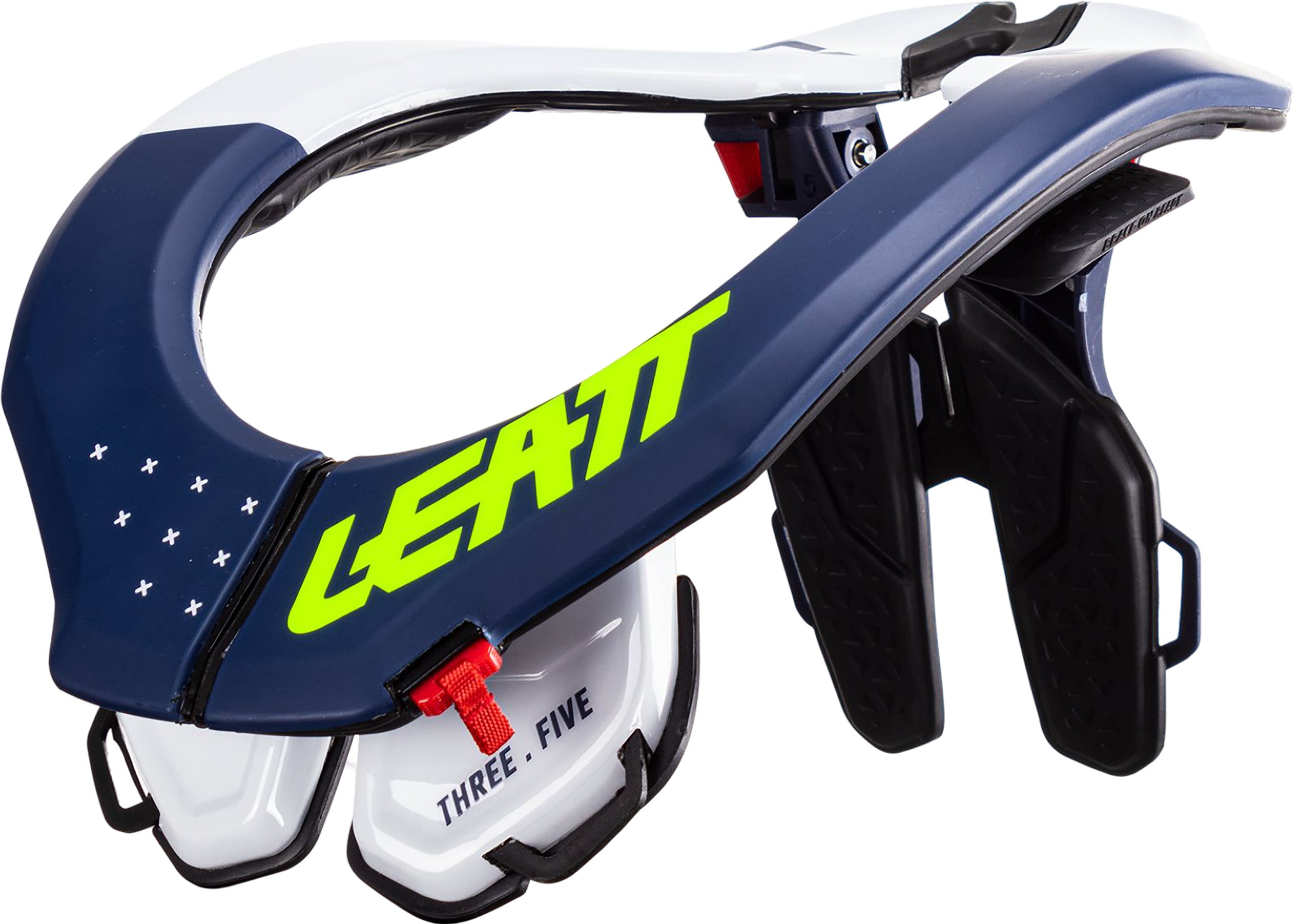 The Leatt 3.5 Junior neck brace offers outstanding protection. It has exactly the same features as the full-size 3.5, but it is made specifically for smaller riders. The collarbone cut-out keeps your helmet rim away from fragile bones, and the rear strut is designed to break away before applying excessive pressure to the back. The 3.5 neck brace is extremely comfortable and durable. It is lightweight, manufactured from composite polyamide, and has 1-way adjustability at the rear for a great fit. Stay fully protected and ride with confidence. For very small riders, we recommend the Fusion Vest 2.0, an all-in-one neck brace and body protector made for mini riders.