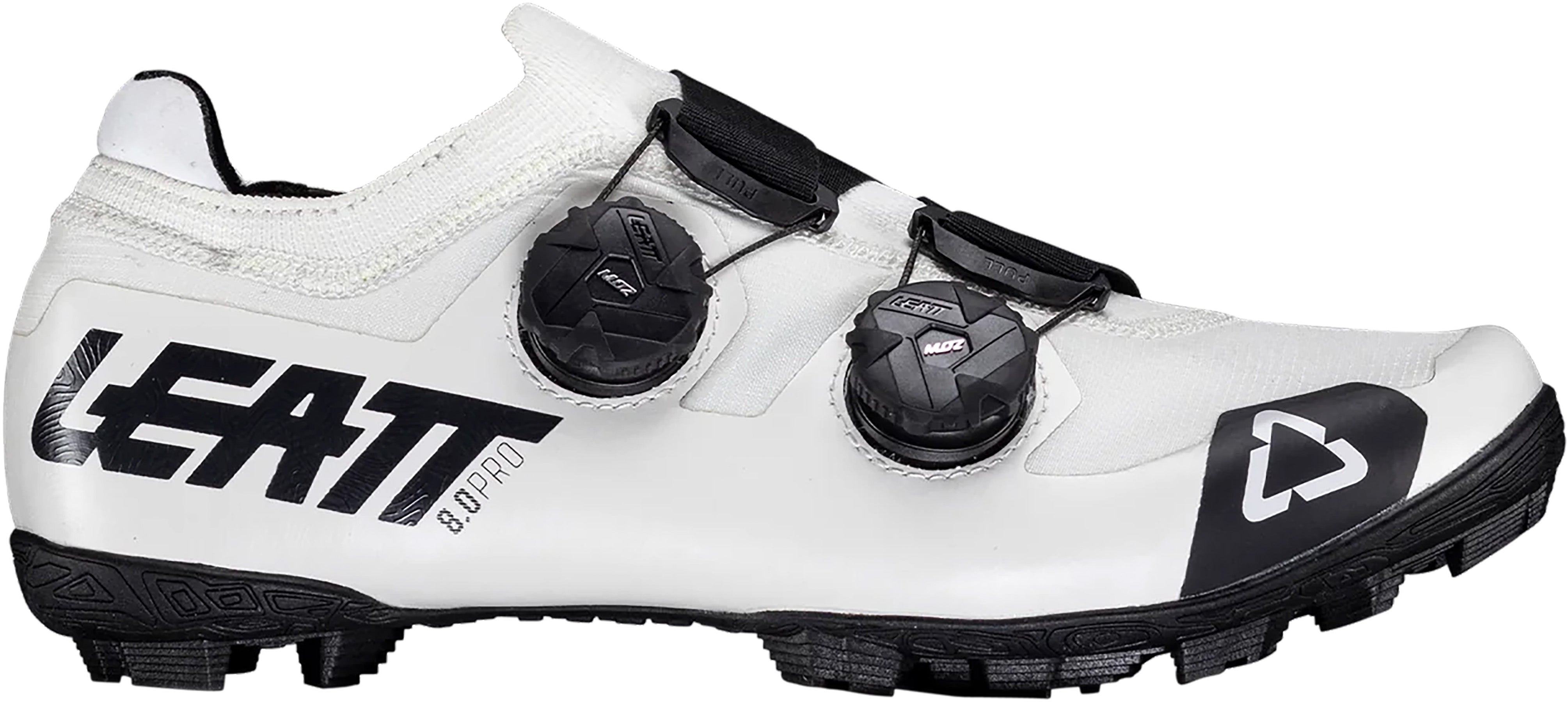 These are Leatt's top-of-the-line Endurance shoes(XC & Gravel). The Dyneema upper is super lightweight with outstanding durability. The sole is carbon-injected(Making it both lightweight and stiff)and features RideGrip rubber with an aggressive tread pattern for easy off-bike walking or incline climbing. The cleat slots are extended for a greater range of adjustment. The two MOZ/Leatt lacing discs are linked to D-Rings to adjust automatically to any instep height, and to make fit adjustment a breeze. Two sets of insoles help the shoes adjust to different foot shapes. The directional fabric on the heel locks it in, avoiding any chance of slip, even if only loosely tightened. The ProClip 8.0 Race shoe has been developed in collaboration with Speed Company pro riders(Winners of the Cape Epic 2022, winner of the 2024 European MTB XC Marathon).