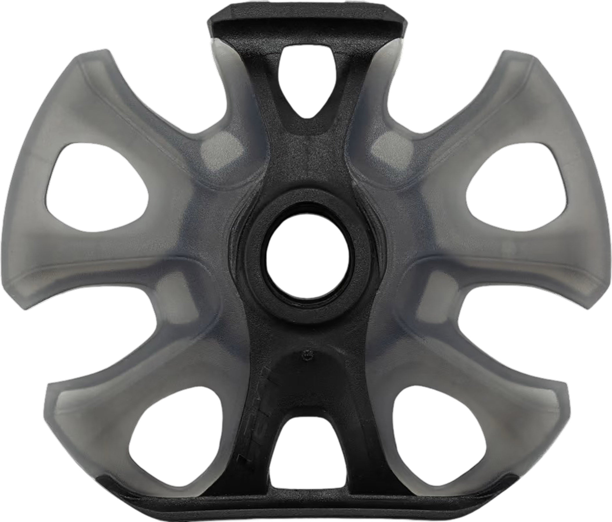 Ski tourers have waited generations for this clever idea. This new Powder Basket helps you when handling the heel lifter, shoes, and ski skins. It has a straight, strutted edge on two sides. You can use one side to adjust the heel lifter without looking and almost without standing as well as open the binding. You can use the long side to effectively and quickly remove snow and ice from the ski skin. With a diameter of 95mm, it provides safety and saves energy when using the poles to climb uphill and for the journey down.