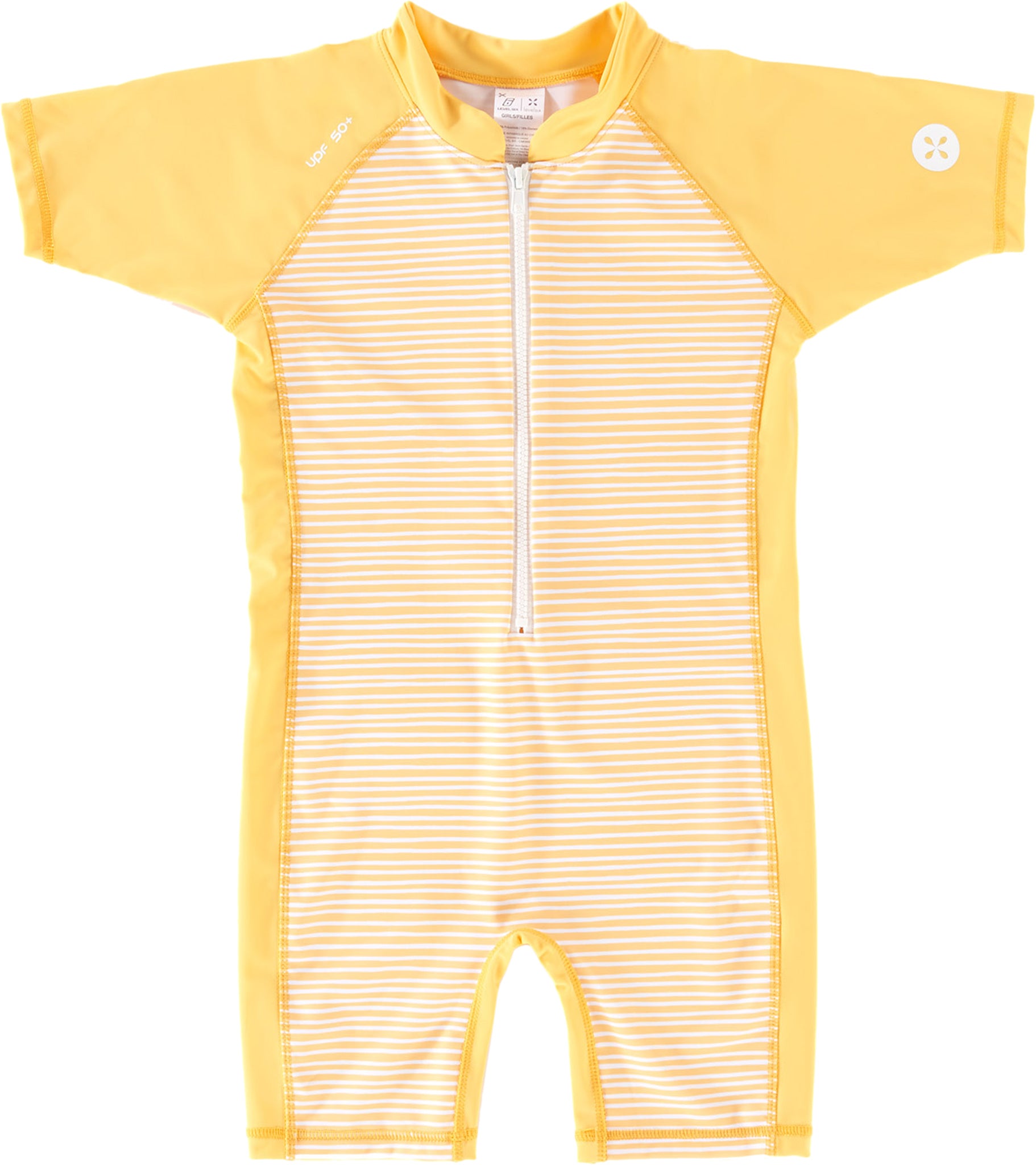 Frolic, play, and keep the sun at bay! The Aurora sun suit ensures your little one is the best-protected child from the sun on the beach. It is constructed with a soft lycra/elastane blend material that is quick-dry, so they will be comfortable all day going in and out of the water. The Aurora has a sun protection factor of UPF 50+. Designed with a front side-winder zipper, the Aurora was made so your little one can crawl, play, and roll around without a zipper chafing their sensitive skin. This long front zipper also makes for easy diaper changes. It’s a perfect option for anyone looking to spend all day on a sunny day at the pool or hanging out at the beach with their tiny tot!