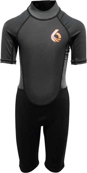 The perfect choice for your little one's water adventures! This wetsuit provides an ideal balance of flexibility, comfort and durability. The lycra material ensures a snug fit, while the neoprene panels offer superior insulation and protection from the elements. Designed with a shorty style, this wetsuit is perfect for warmer water temperatures or for young swimmers who prefer a greater range of motion. This wetsuit also features a back zip closure, making it easy to put on and take off and a sturdy zipper pull for added convenience. The flatlock stitching helps to prevent chafing and irritation. Whether your child is diving, swimming, snorkeling, or simply playing in the water, our Hybrid Shorty Wetsuit is the perfect choice for comfort, flexibility and protection.