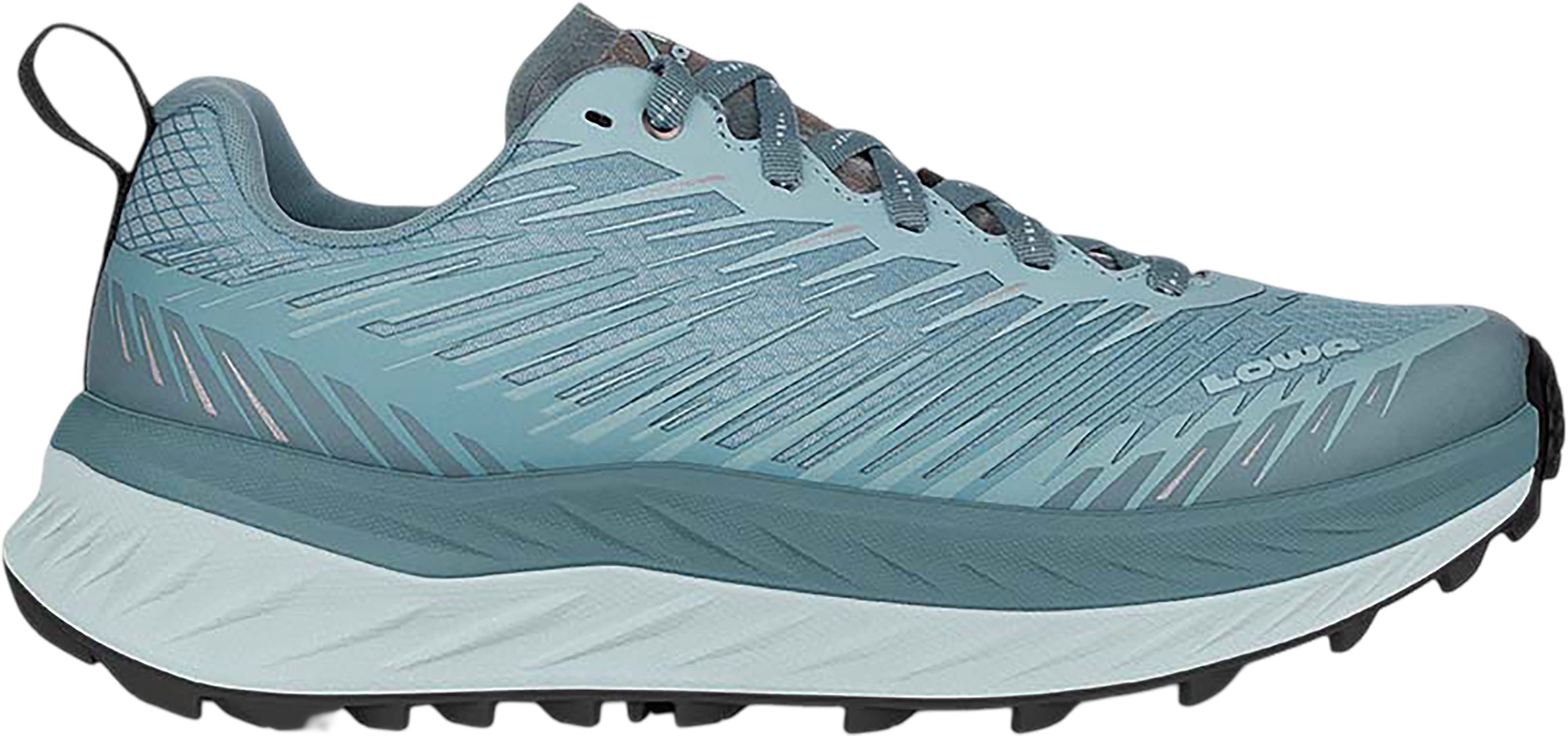 Maximum comfort combined with minimum weight are essential when it comes to ultra-long distances, because the running shoes take over, at the very latest, when legs start to tire and feet begin to hurt. So too the Fortux Ws, equipped with the special Lowa® Trac® sole system consisting of an outsole made of grippy rubber and a particularly pronounced Dyneva midsole offering a high rebound effect over the entire length of the shoe. The slightly curved rocker construction helps to ensure the best possible comfort when running dynamic laps. The one-piece upper eliminates unnecessary seams and thus the risk of friction points. Combined with the RepTex® Sport PU coating, this also makes the shoes more durable. A light-weight, seamlessly engineered tongue provides a unique combination of comfort and breathability. Padded all round for maximum comfort.
