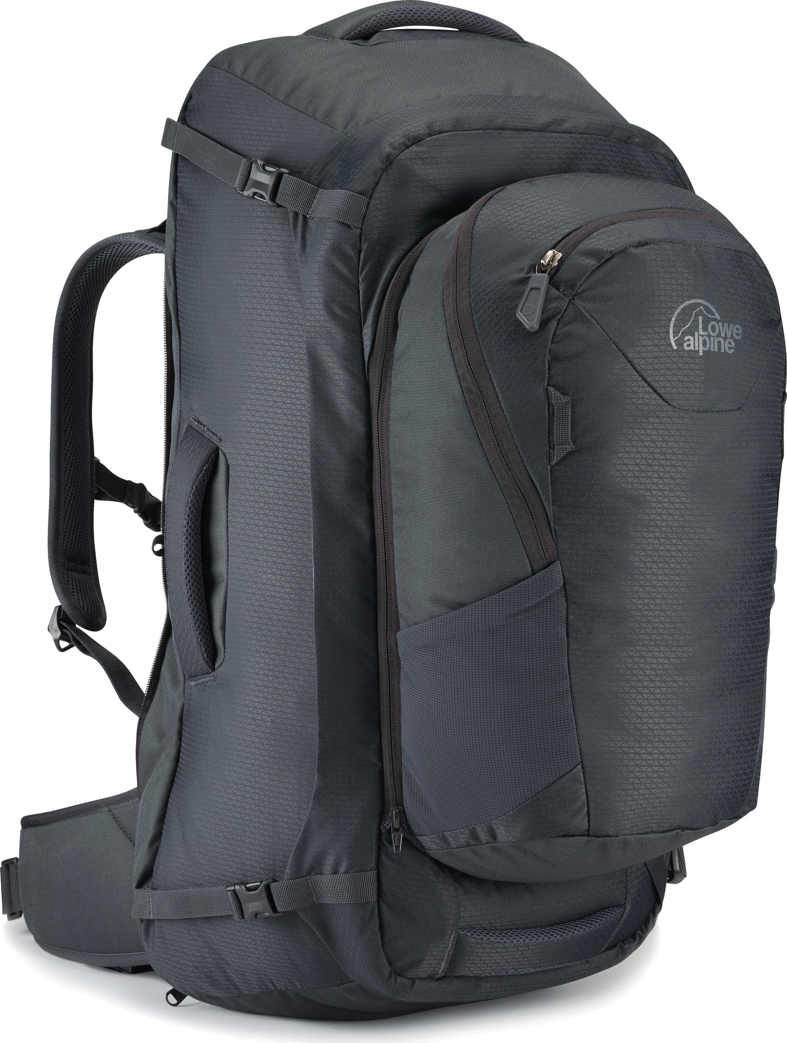 Features • Internal compression straps • Lockable sliders • Daypack zips on to front of main pack • Internal mesh zipped organisation pockets • Zipped top pocket • External compression straps • Front lash points • Sternum strap • H2O sleeve • Hidden security pocket • Stretch bottle pockets on daypack • Volume: 55 + 15lt • Dimensions: 68 x 35 x 30cm • Weight: 2.20kg