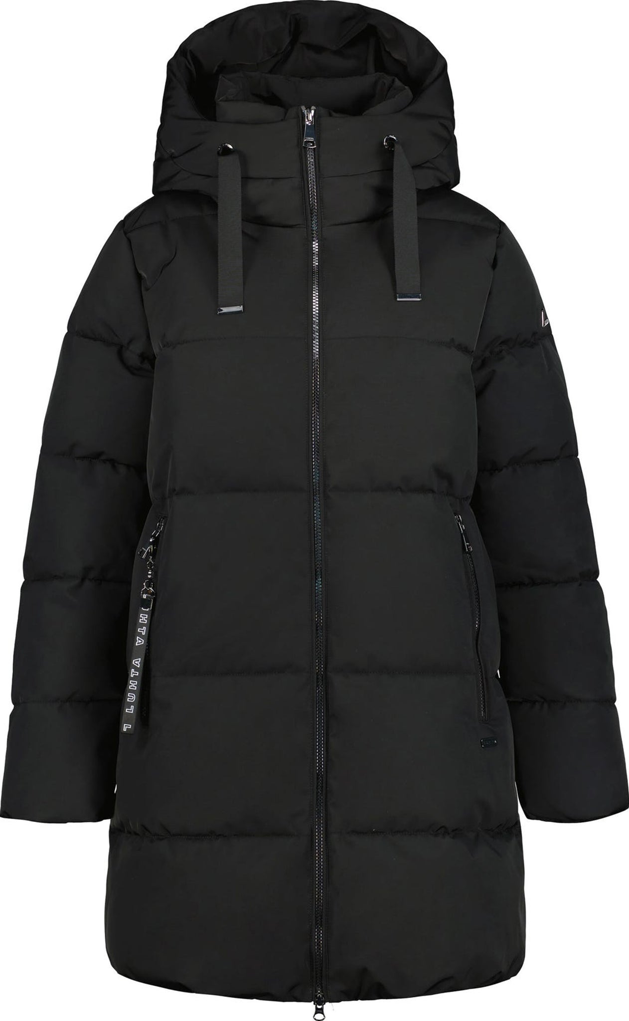 Luhta coat for women. Functionality and comfort have been prioritized in the design process of this A.W.S. Active product, making it a perfect fit for both energetic and relaxed activities. The fabric surface has been treated with a PFC-Free water-repellent finish. It is extremely warm and airy, with lightweight insulation with down imitation. This windproof material provides optimal wind protection and warmth. Extra warm insulation.