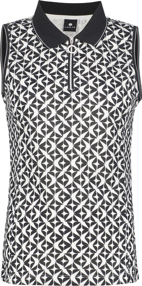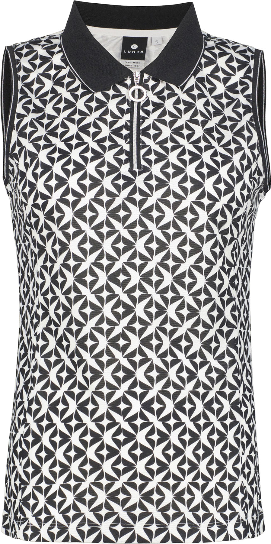 Luhta top for women. Half-zip front. Decorative front zip. Allover pattern. Logo label. The 4-way stretch material stretches in all directions giving maximum freedom of movement. When designing this A.W.S. Active product, special attention has been paid to functionality and comfort, so the product is suitable for both active and casual use. Contains recycled material.