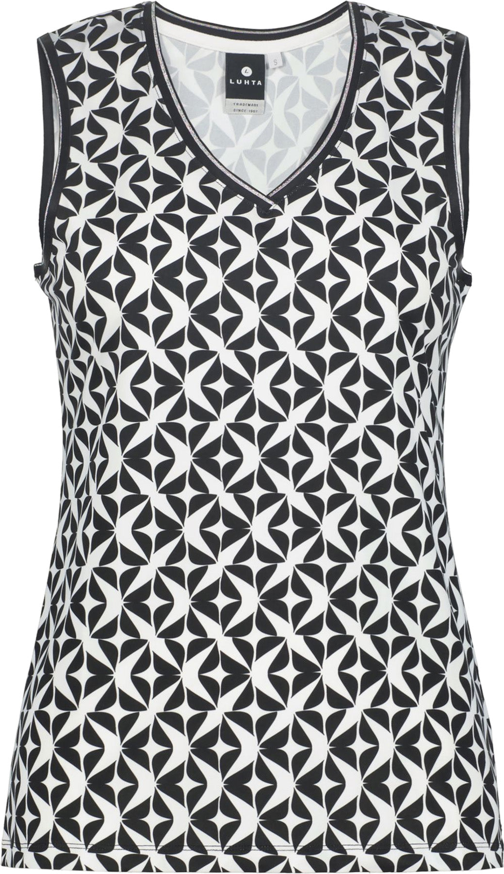 Luhta top for women. V neck. Logo label. Printed pattern. When designing this A.W.S. Active product, special attention has been paid to functionality and comfort, so the product is suitable for both active and casual use. Contains recycled material.