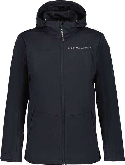Luhta softshell jacket for men. Two-way-adjustable hood. Adjustable fixed hood. Adjustable cuffs. Two zipped front pockets. Zip front. Adjustable hem. Decorative print. Logo label. Water column 10,000mm. Breathability 5,000g/m²/24h. Softshell is a functional material for a wide range of outdoor activities. The product provides weather protection while being comfortably flexible at the same time. Functionality and comfort have been paid special attention to in the design process of this A.W.S. Active product, which makes it fit for both energetic and relaxed activities. The product is made water-repellent without PFCs. The 4-way stretch material stretches to all directions giving a maximum freedom of movement. The fabric surface has been treated with a water-repellent finish. This windproof material provides optimal wind protection and warmth.