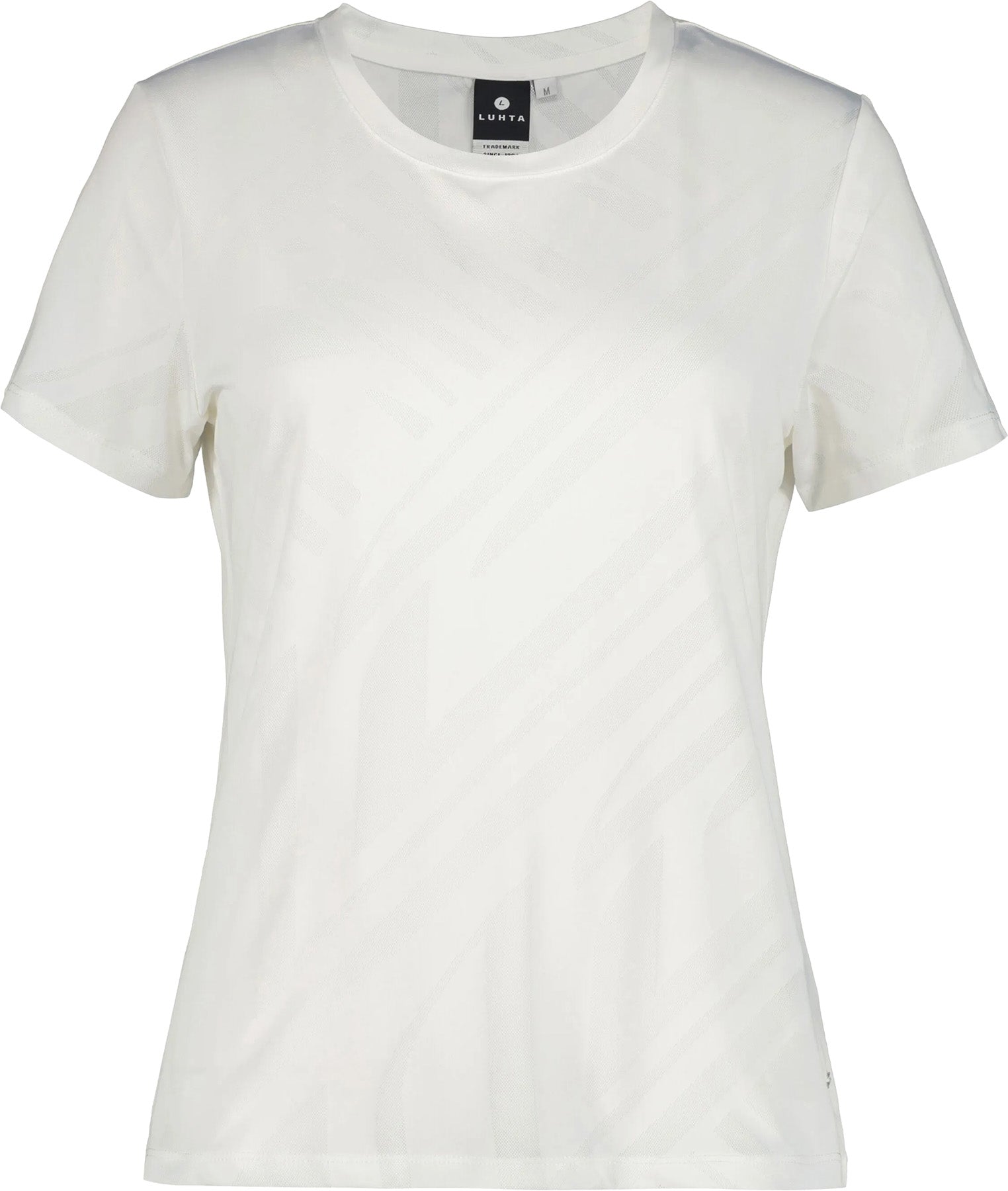 Luhta T-shirt for women. Round neck. Logo label. Logo print. Printed pattern. The 4-way stretch material stretches in all directions giving maximum freedom of movement. When designing this A.W.S. Active product, special attention has been paid to functionality and comfort, so the product is suitable for both active and casual use.